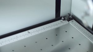 • Now measure how far the line the Laser burned from the ruler. If the line is exactly one inch then you will not need to adjust that ruler. If it is not 1 inch then you will need to loosen the 3 sets crews holding the ruler down. The screw holes are actually slotted, the ruler can be slid back and fourth to get it where you want it and the can be tightened down in place.