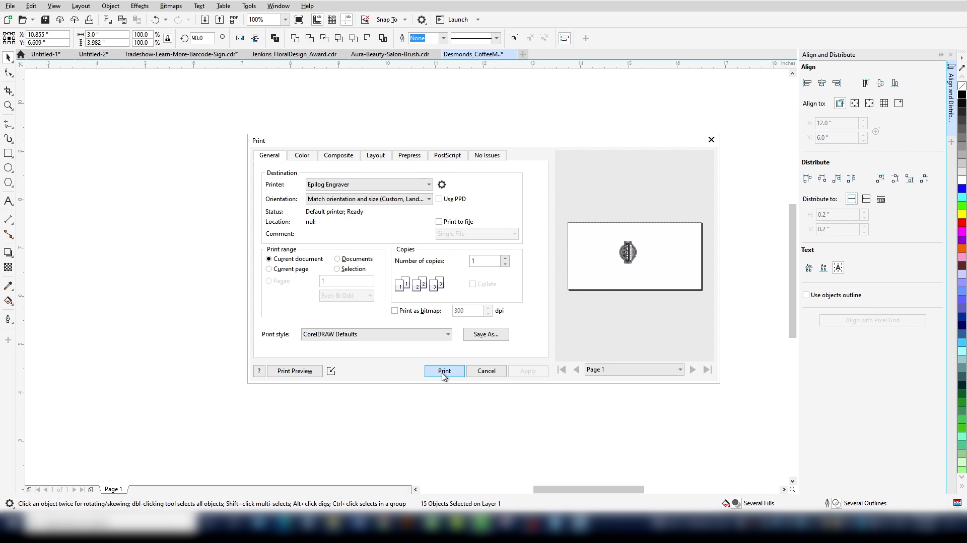 Back on the Preview tab, we can see the preview shows a red target over the center point of the graphic showing our new home position.