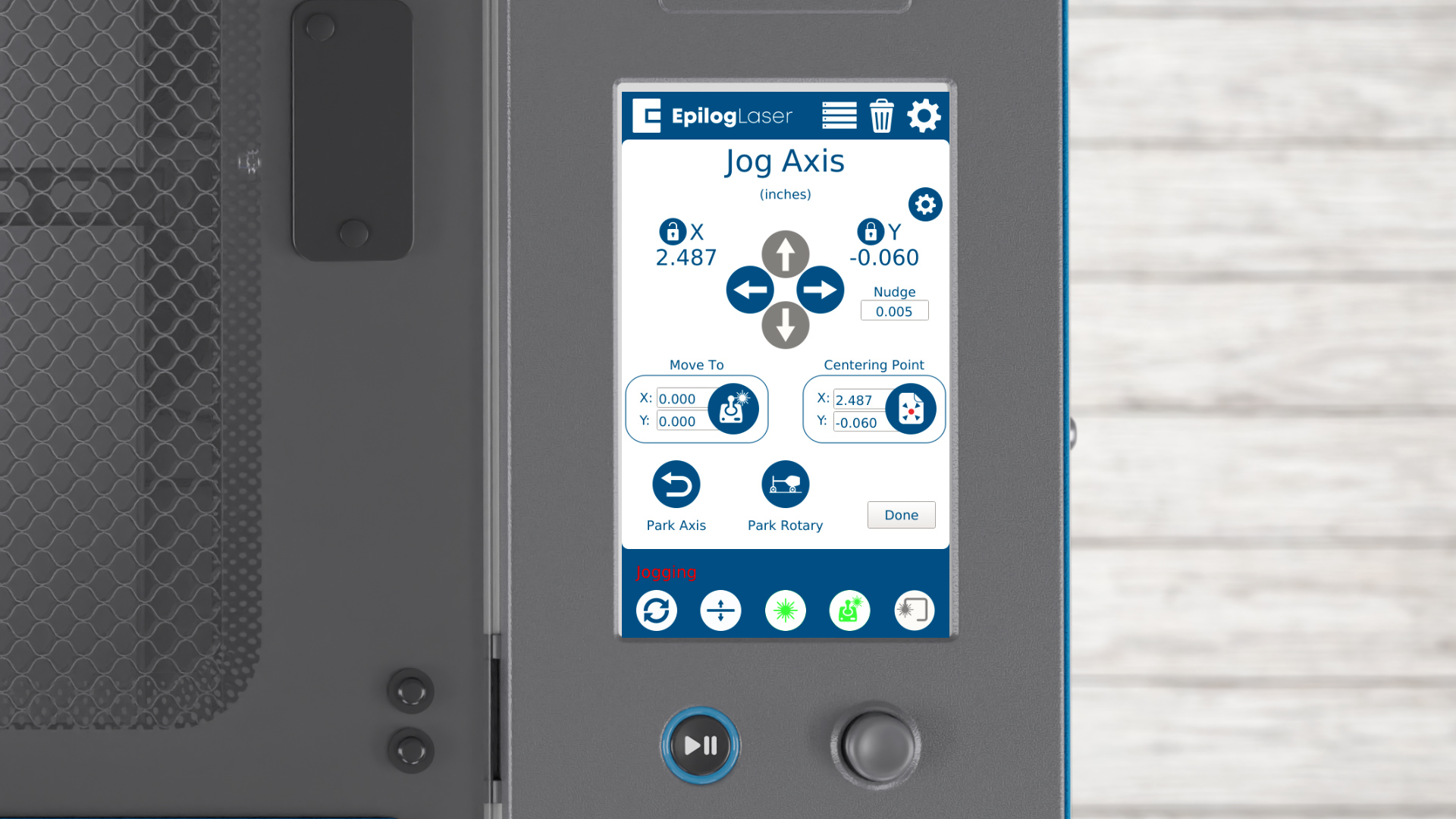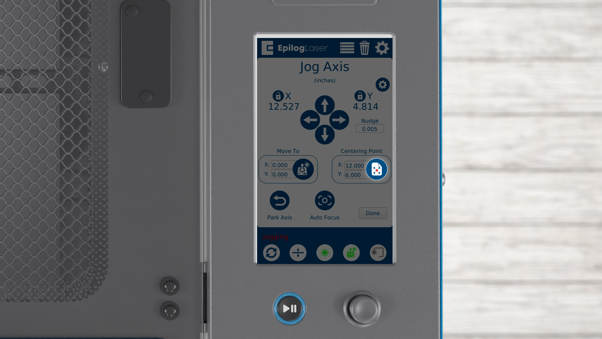 Once the laser head is in position, press the Centering Point button on the control panel. This saves your temporary home position in the system’s memory.