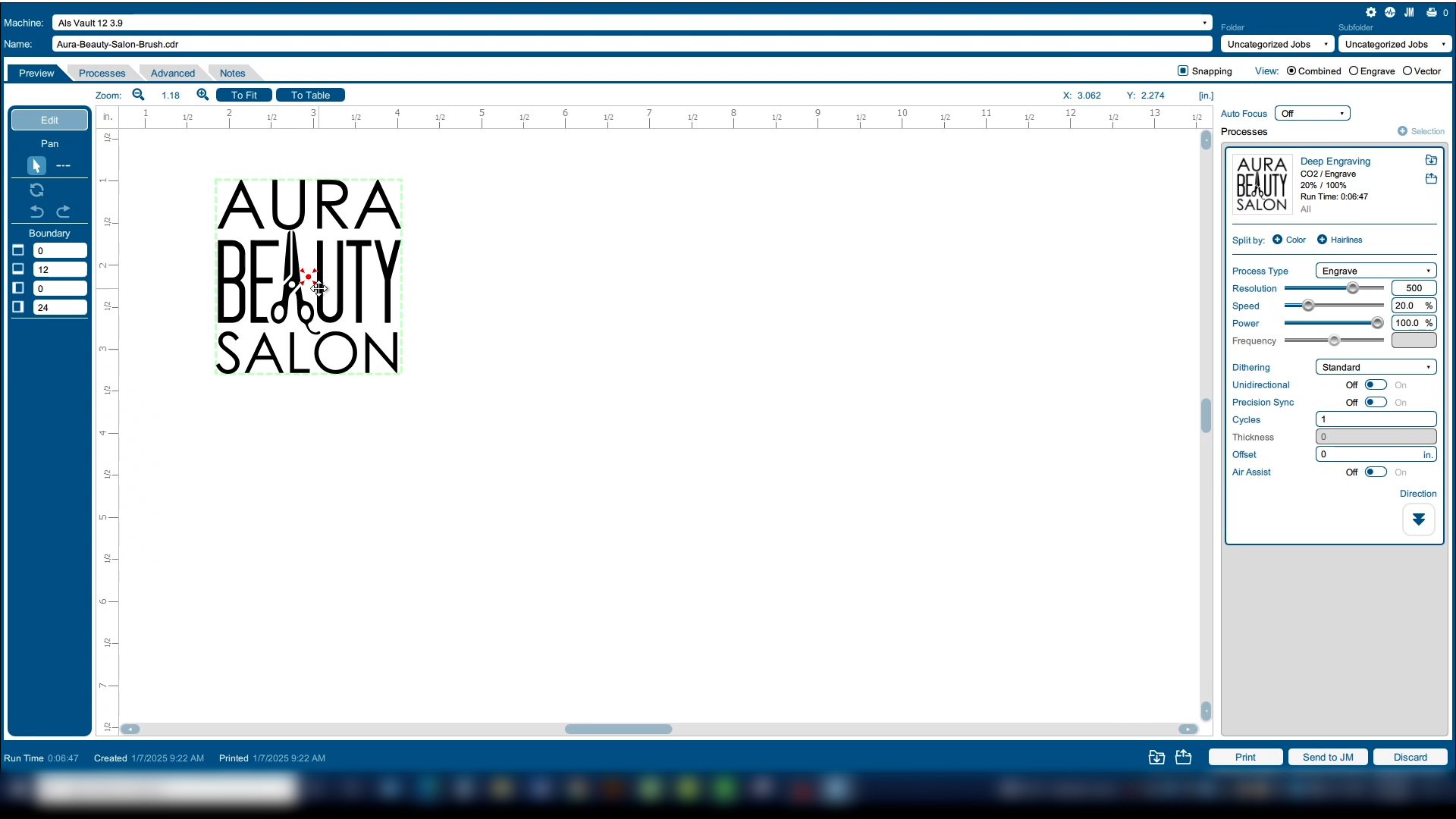 To ensure everything is set correctly, run a test job by pressing the Trace button on the control panel. This will trace a square around the engraving area and help verify your home positioning.