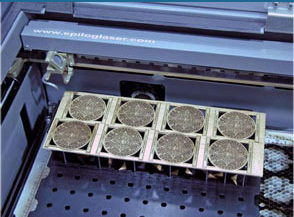 The final step is to place your plastic sheet into the the system and engrave and cut it. We used Rowmark Grey/White engravable .0625 inch laserable plastic for the Jenga Block Jig.