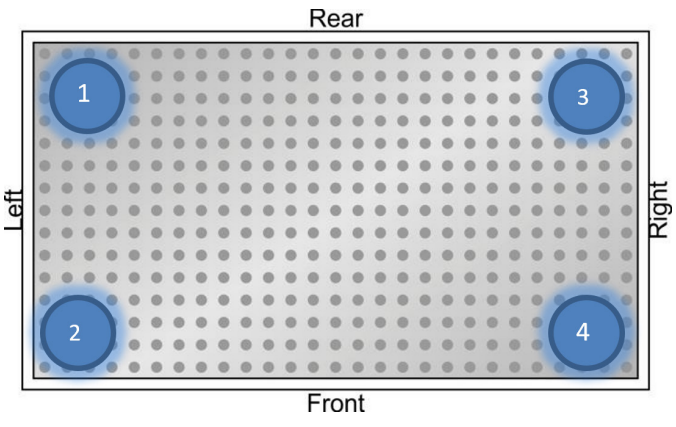 Move the carriage back to position 1 (left rear) to verify the red dot is still centered. Repeat adjustments if necessary.