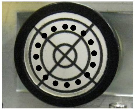 Move the lens carriage to the left front of the engraver. If the dot is off-center, adjust the upper periscope mirror until it is centered.