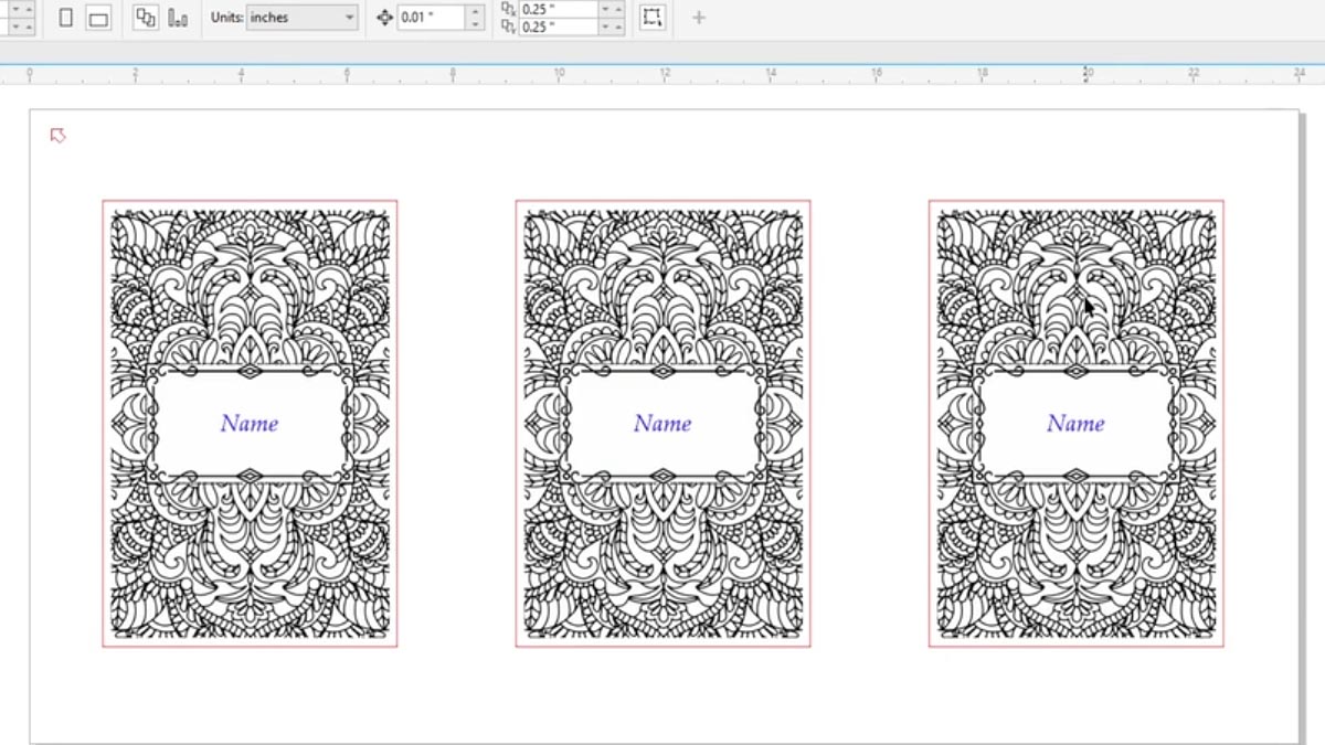 The red lines are the outlines of the notebooks we’ll cut out in a jig.