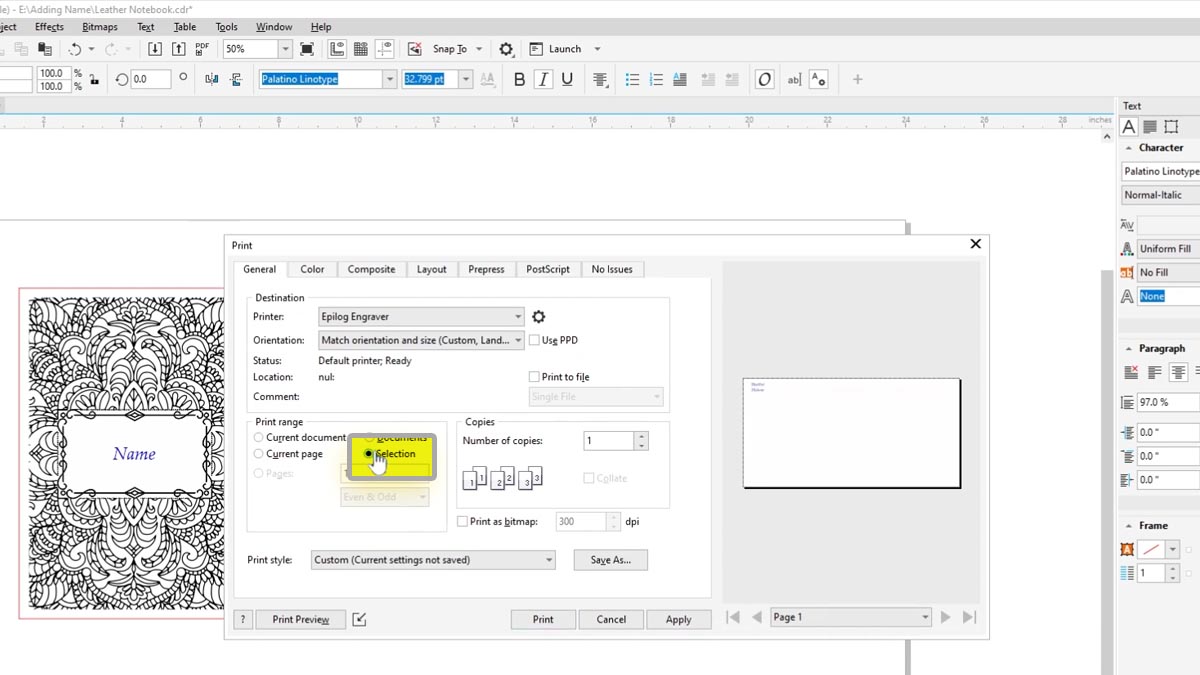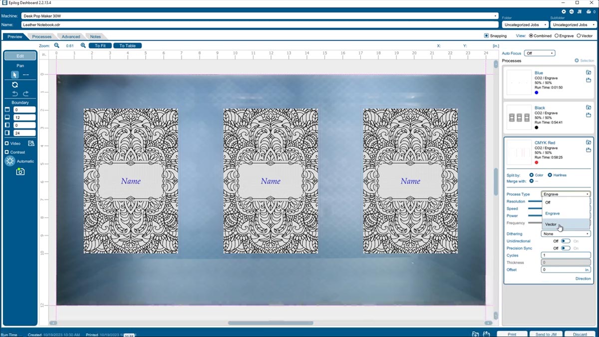 Choose our Leather Shallow engraving settings and print the file to the laser.