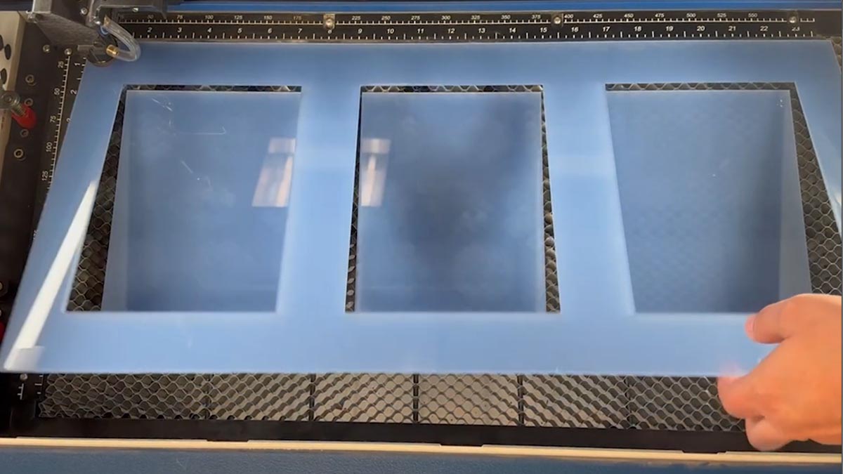 load the laser with the desired jig material. For this lesson, we are using a sheet of acrylic.