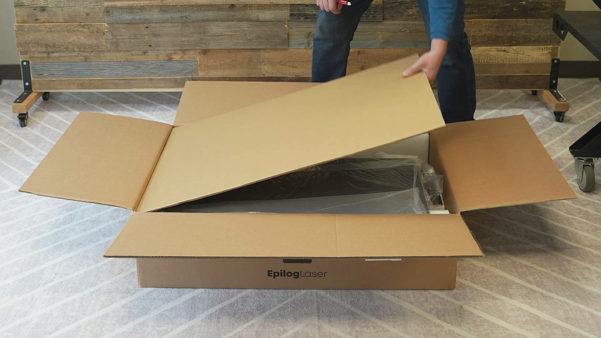 Begin by moving the packaging near your machine, in the center of a room or open space.
