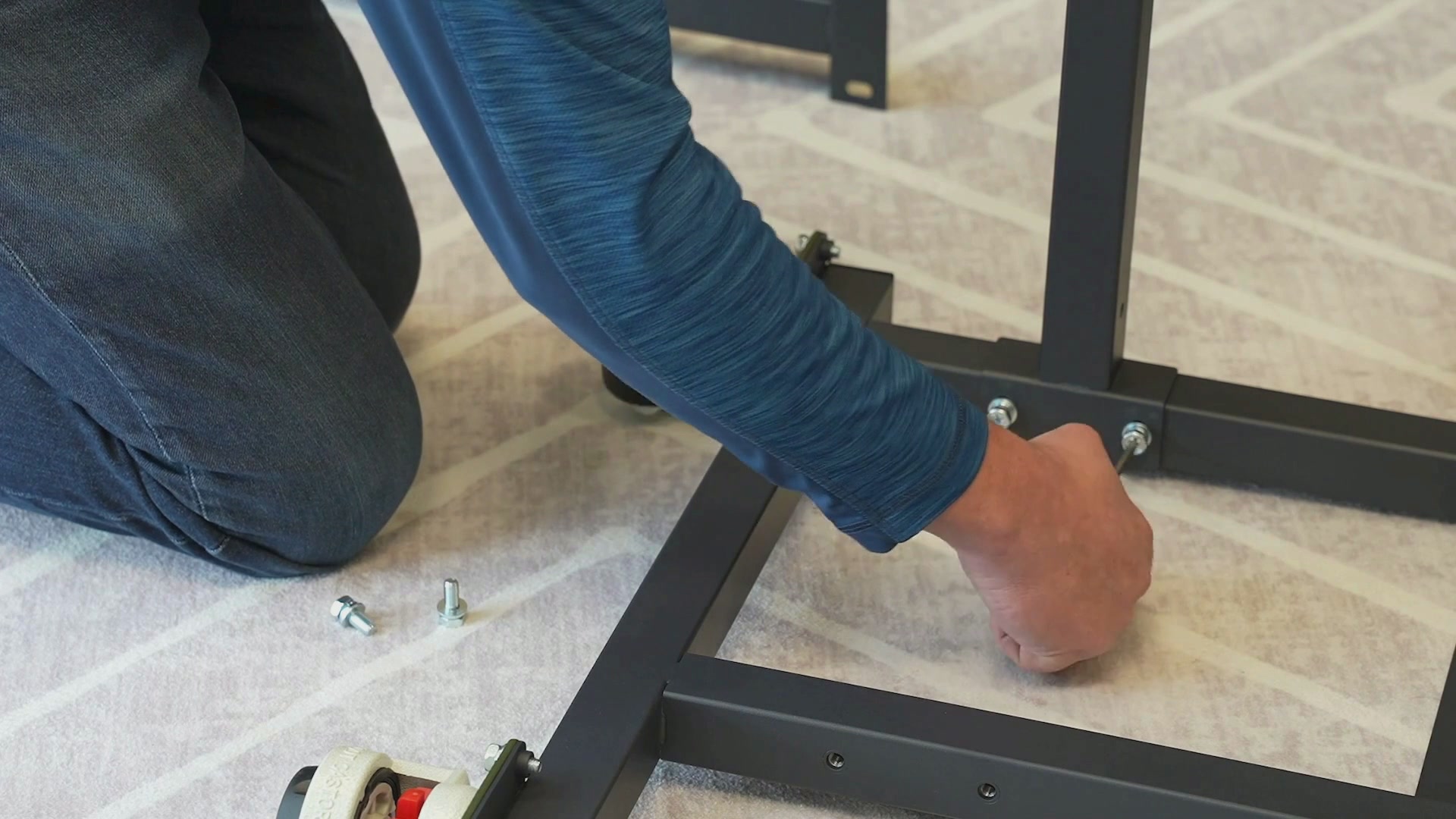 With the cross beams flat against the bar, finish tightening them with the use of a wrench.