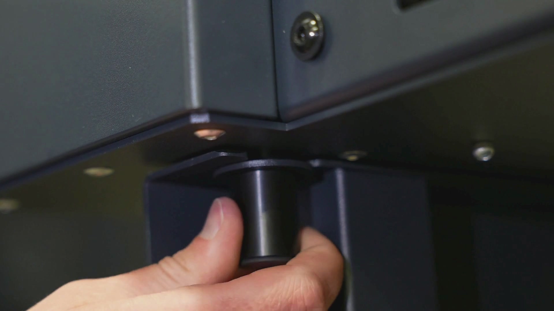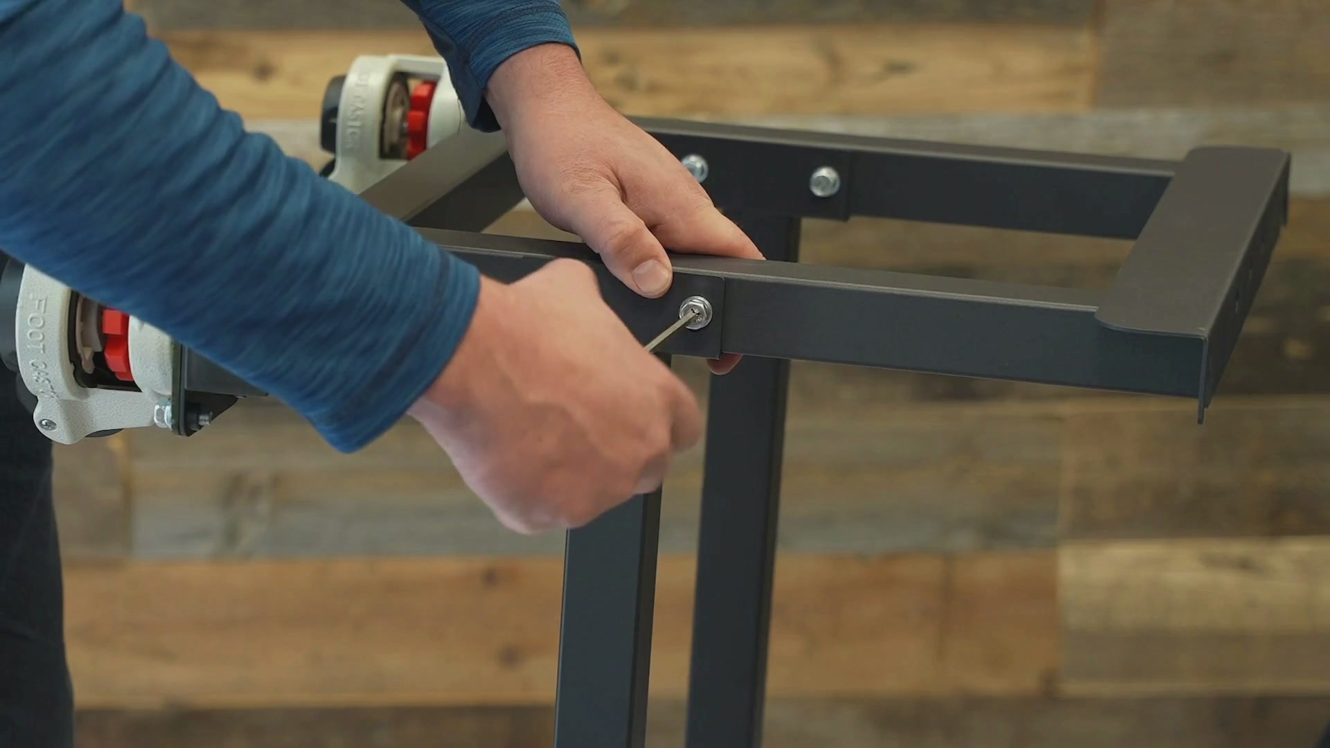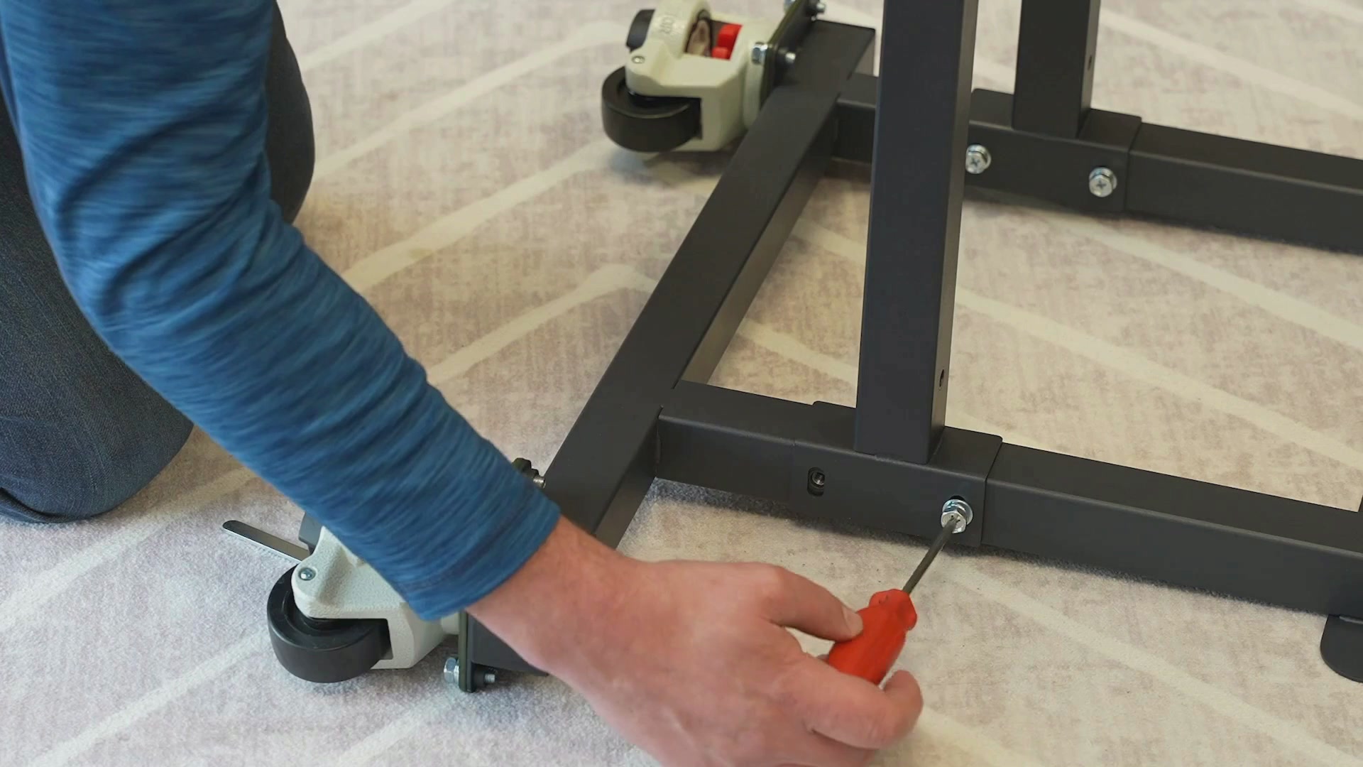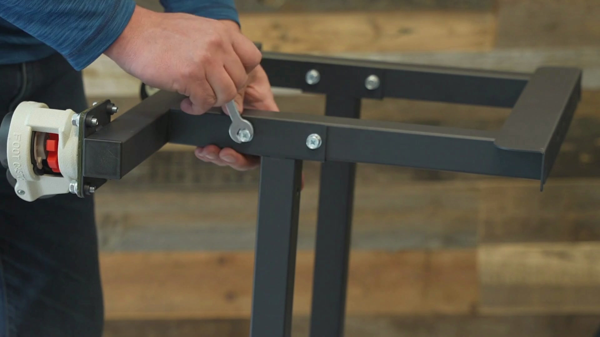Attach the second cross beam using two more large screws with the cross beam flat against the bar, finish tightening it as well with the wrench.