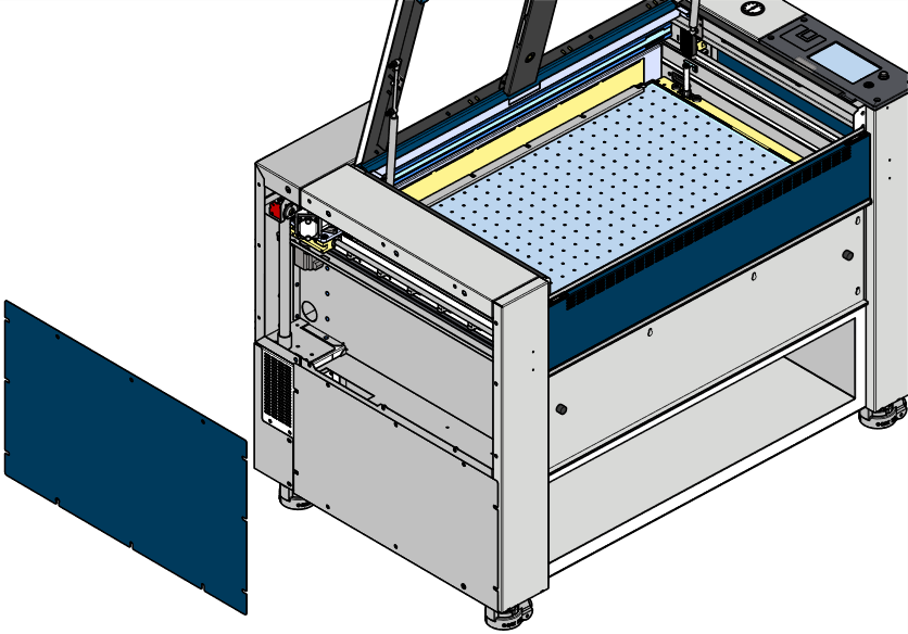 This guide outlines the step-by-step procedure for replacing the X-Axis linear guide on a Fusion Pro laser with the increased aperture. The linear guide is a critical component that ensures smooth and precise movement of the laser carriage. Over time, it may require replacement due to wear or damage. Follow the instructions below carefully to disassemble the necessary components, install the new guide, and reassemble the machine safely and correctly. Always power down and unplug the system before beginning maintenance.