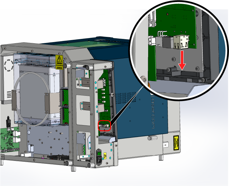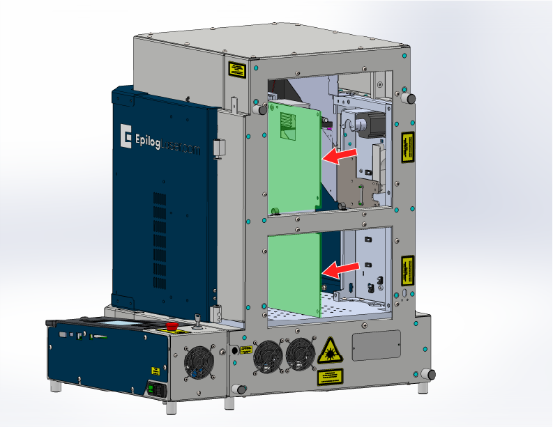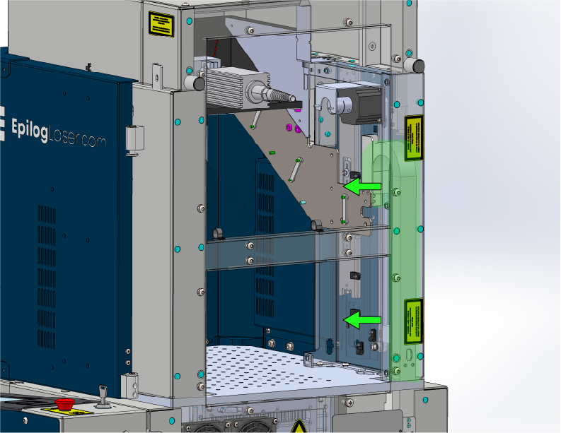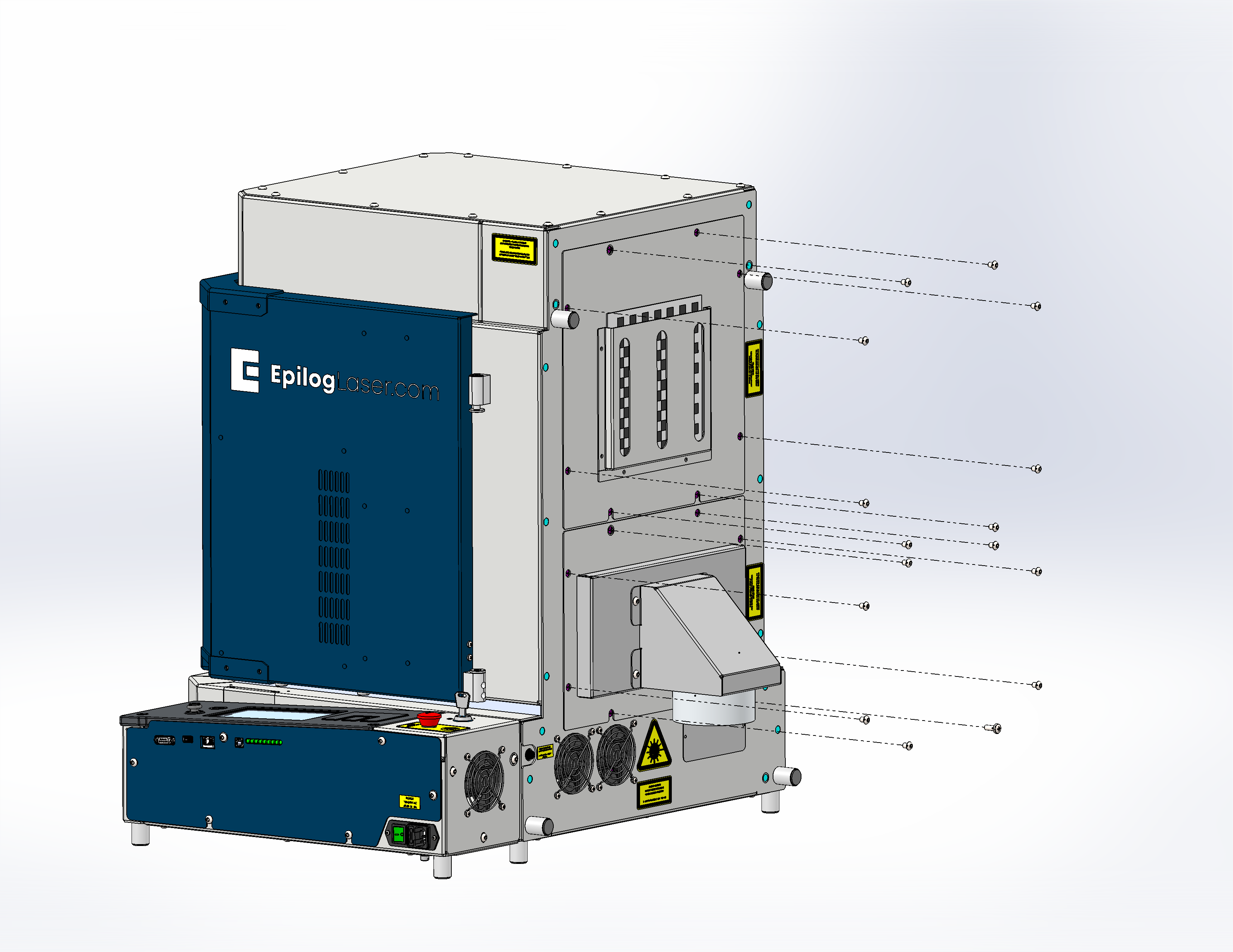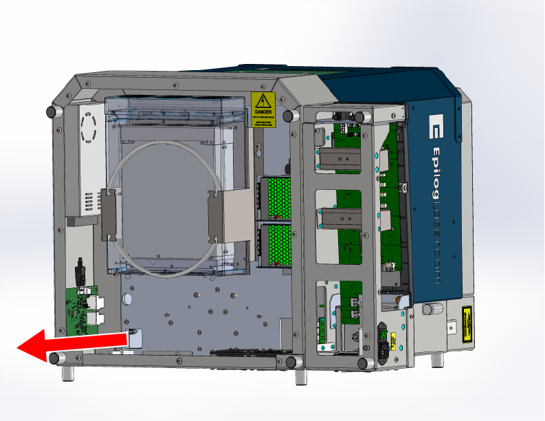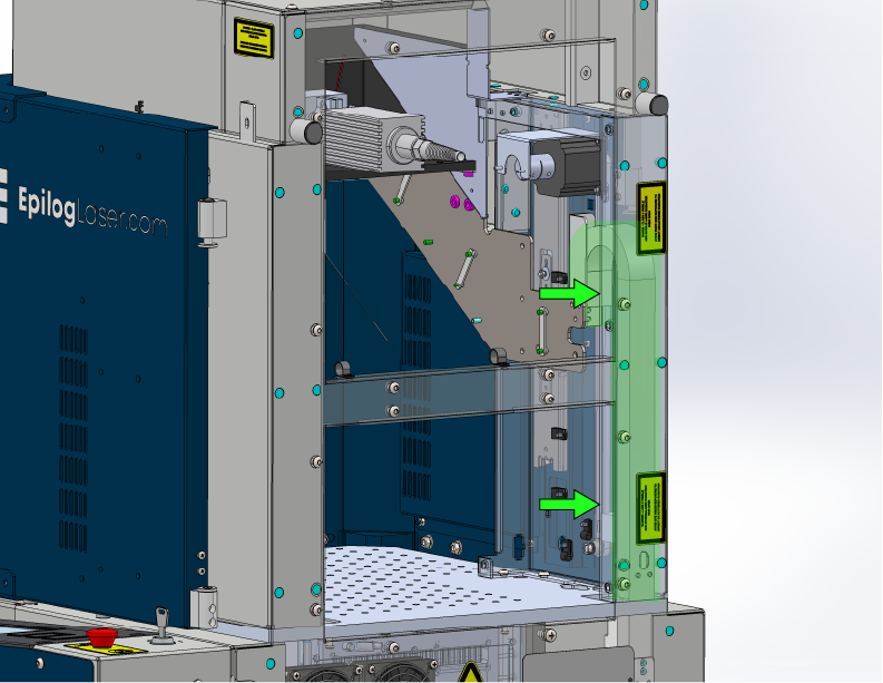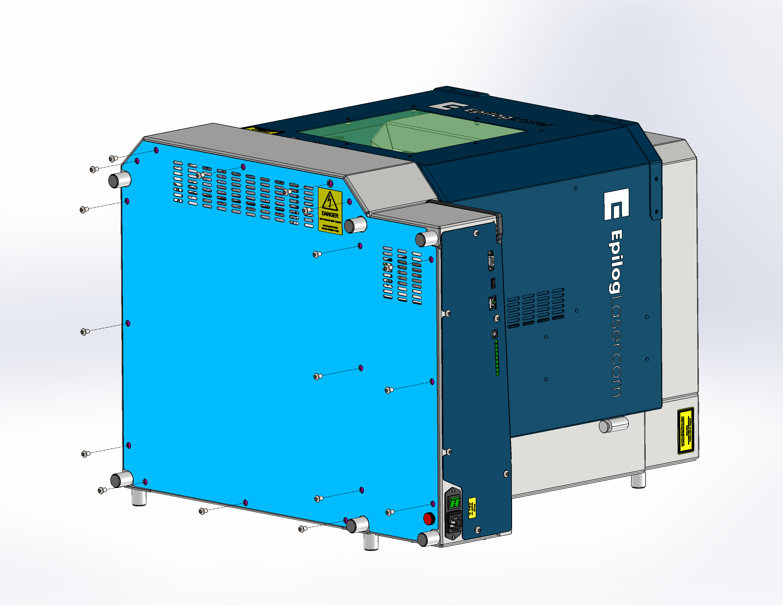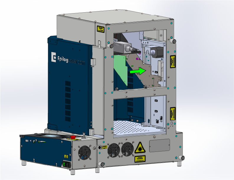 This guide walks you through replacing the camera cable on a G100 laser system. Only perform this procedure if the camera cable has failed and replacement is absolutely necessary. Several steps require removing panels and tilting the machine on its back which requires two people. Use caution and follow all safety notes carefully.