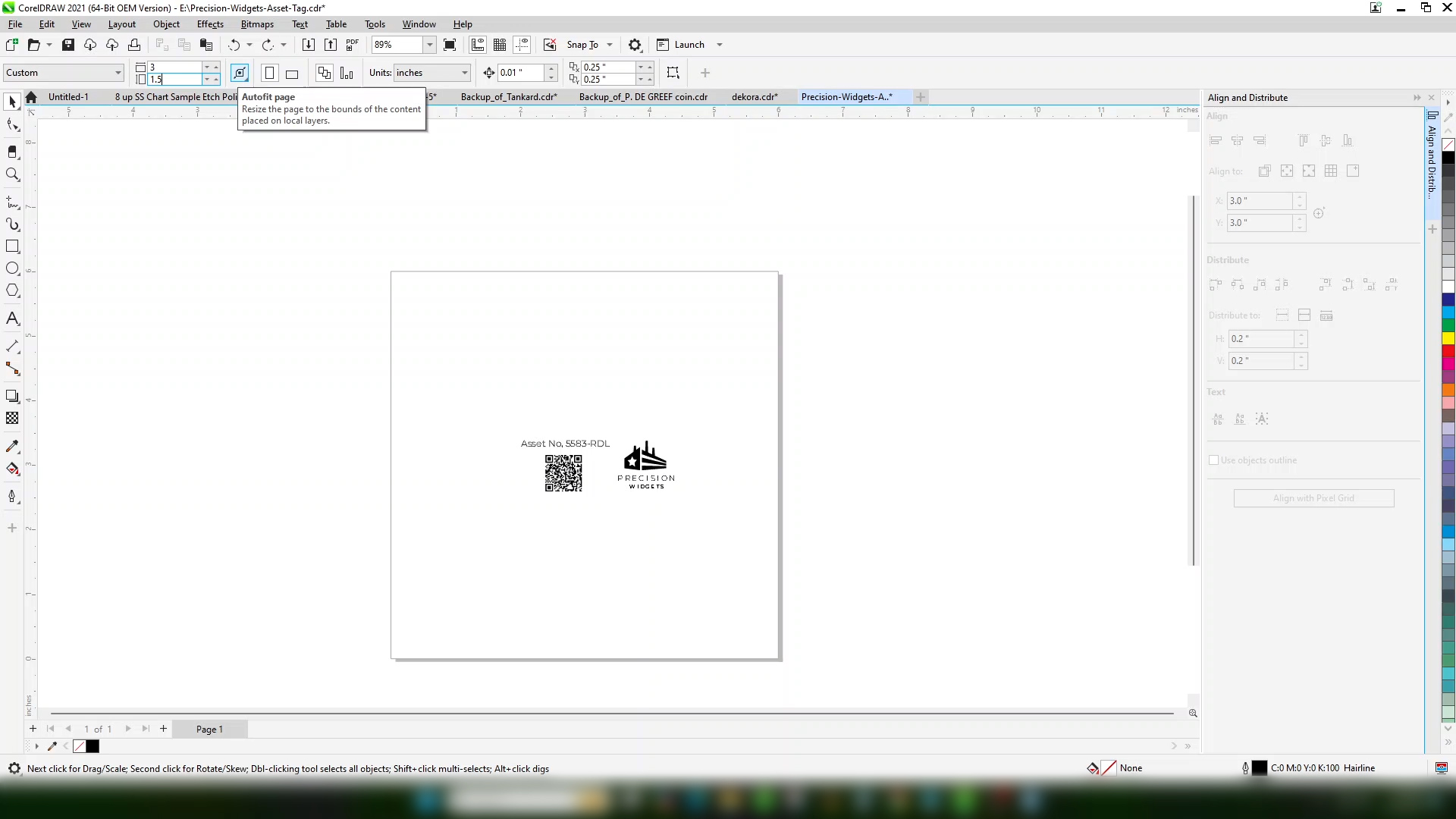 For this file we’re going to just engrave one tag, so we’ll set the page size to the size of one tag.