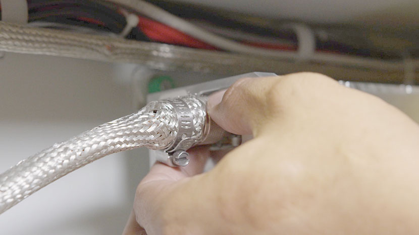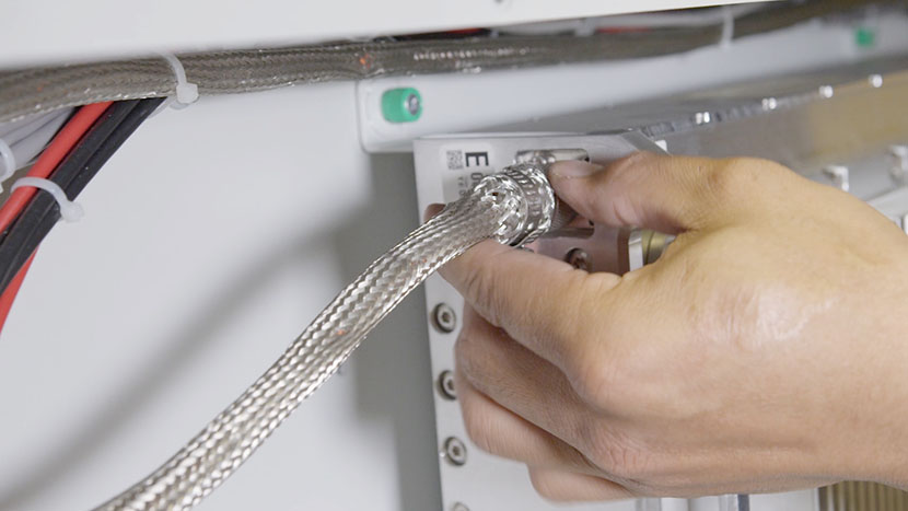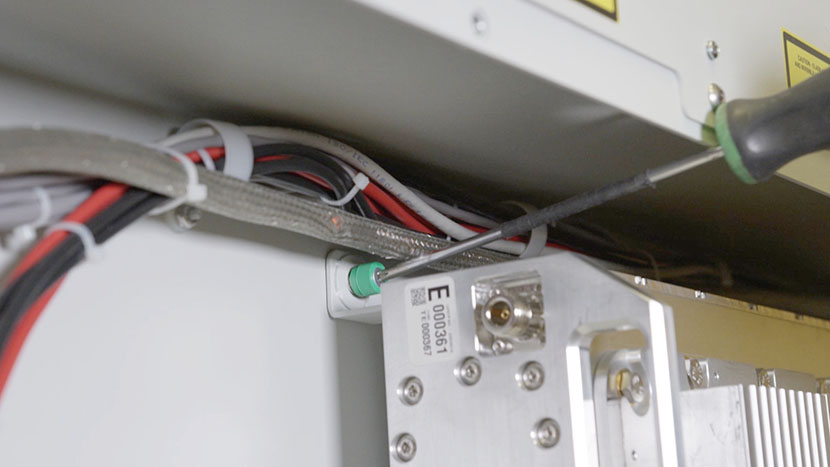 Reconnect the RF power supply cable to the end of the laser tube by screwing it in.