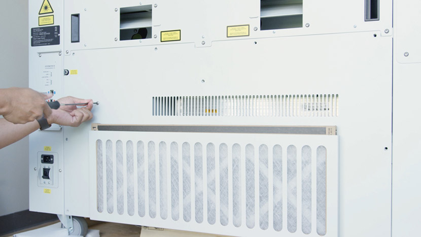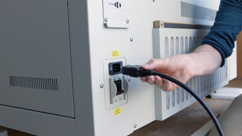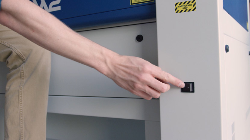 Shut off the laser and remove the power cord from the machine.