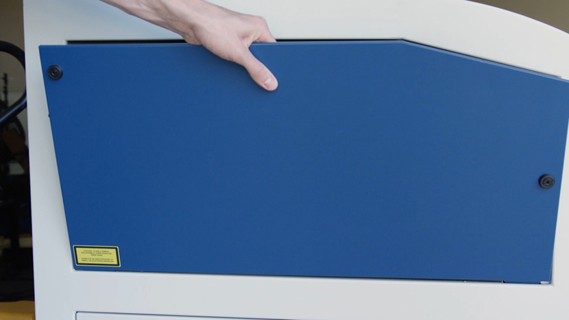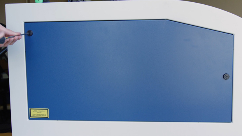 Use a 5/32” hex key to remove the hex screws that secure the lower panel on the rear of the machine, then remove the panel.