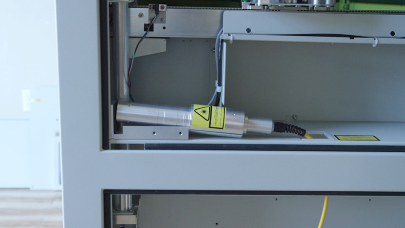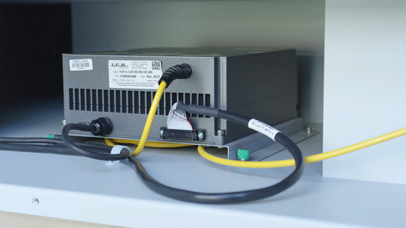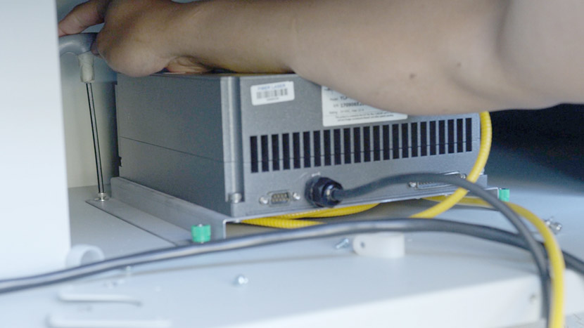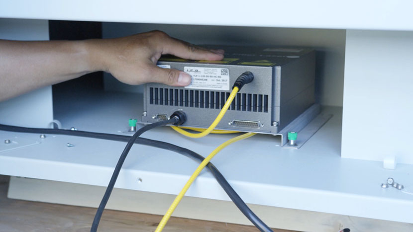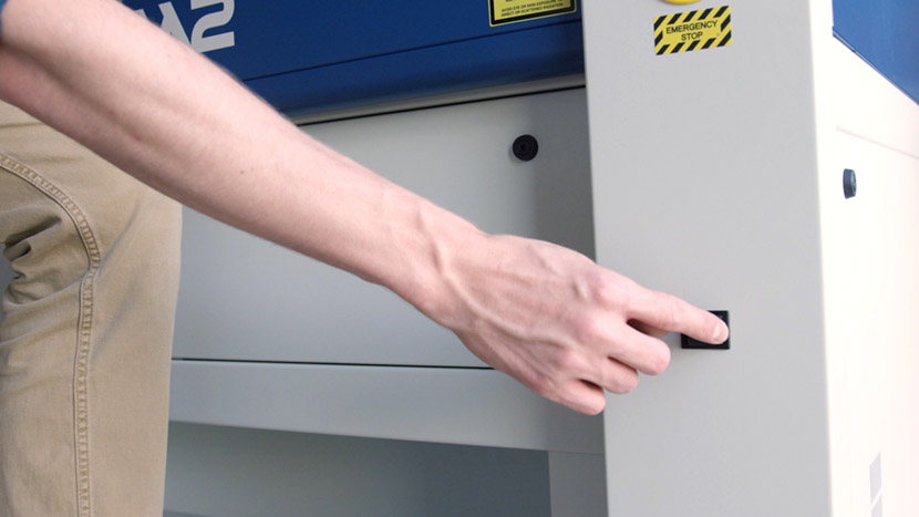 The Fusion M2 Fiber Laser Tube is located on the bottom compartment of the machine.