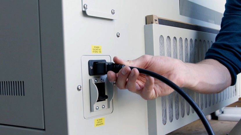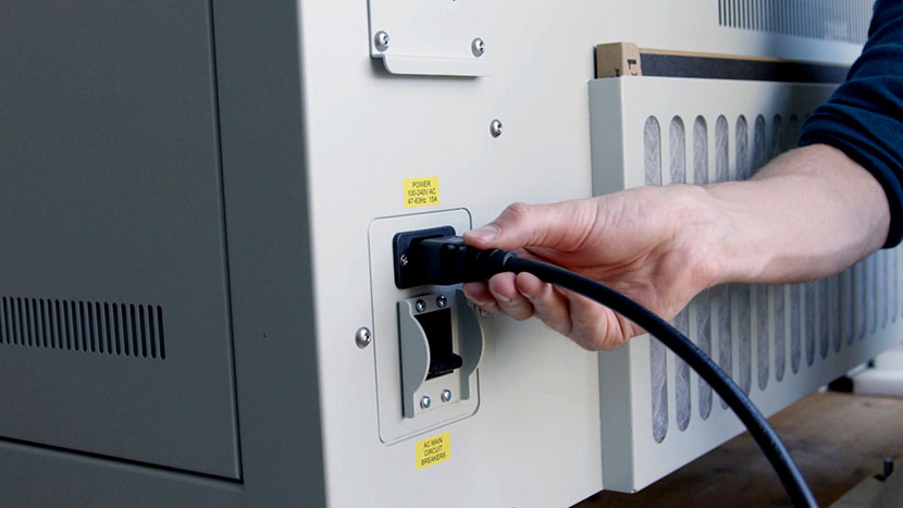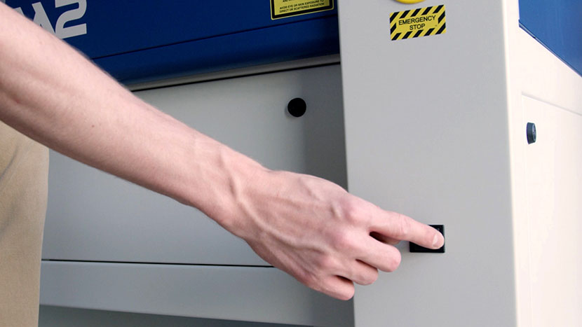 Shut off the laser and remove the power cord from the machine.