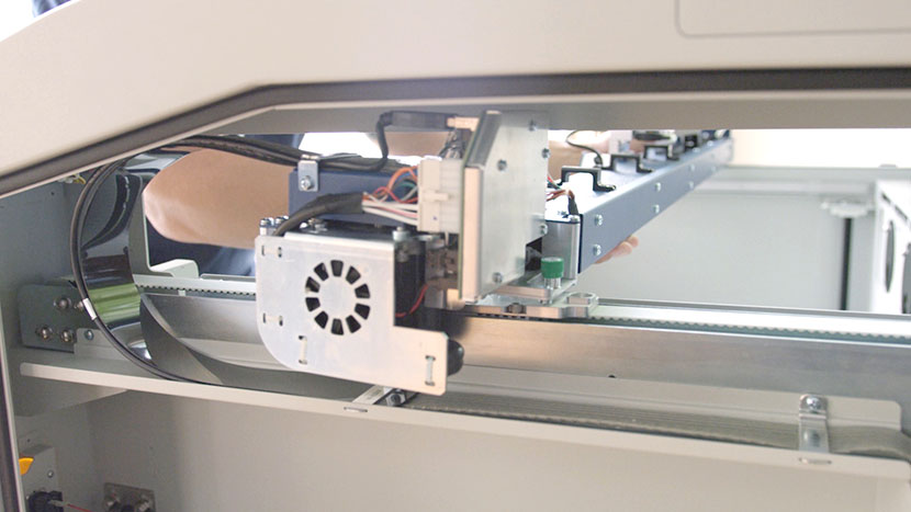 Reconnect it with the black connector in the back of the x-axis assembly.