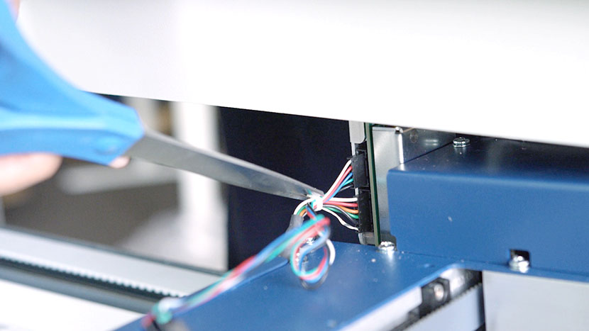 Cut the zip tie securing the sensor wires to the x-axis assembly.