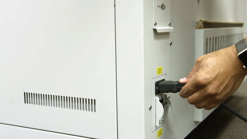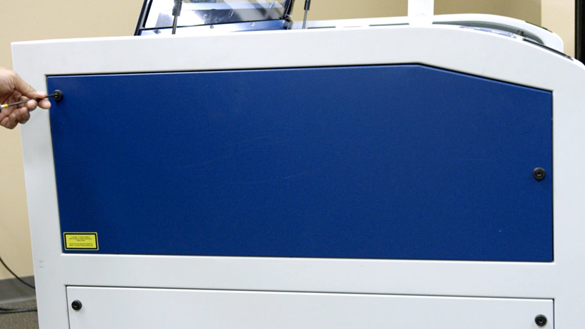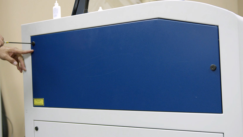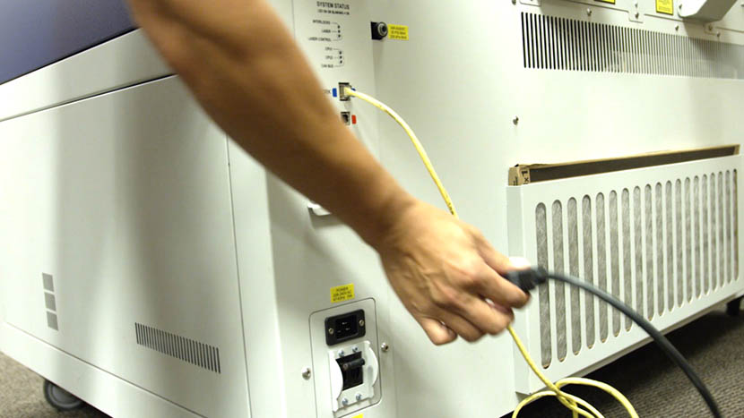 Shut off the laser and remove the power cord from the machine.