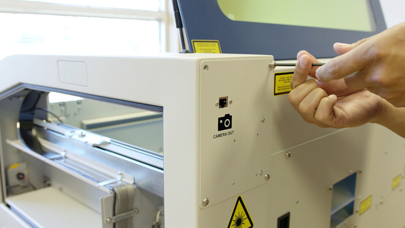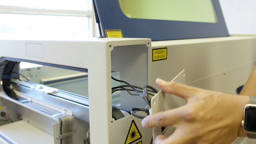 Set the laser head to the side so it’s out of the path of the compartment panels.