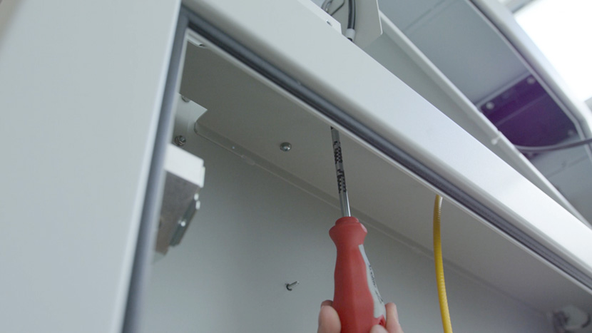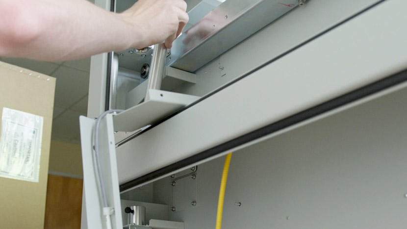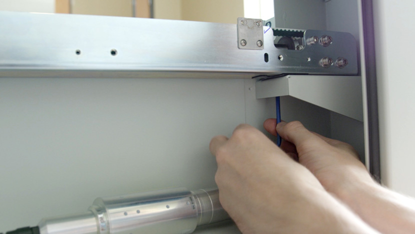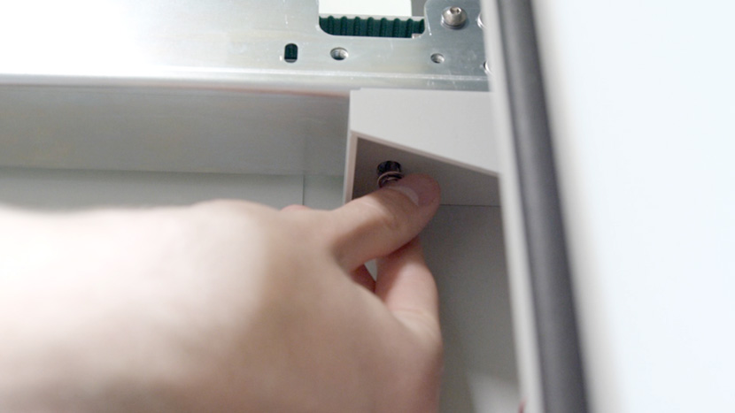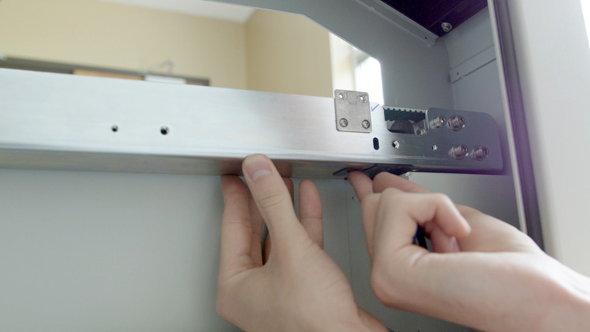 Use a Philips head screwdriver to insert the 3 screws that connect the compartment panels to the side of the y-axis.