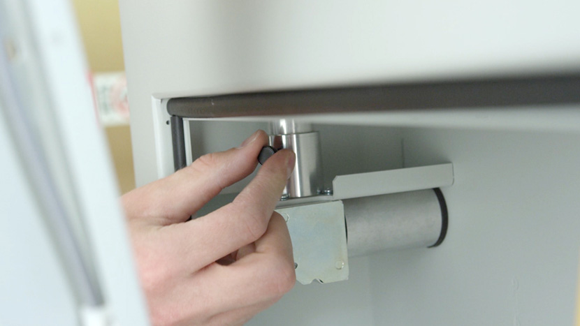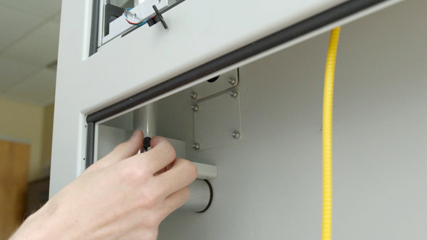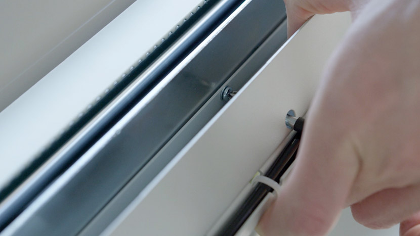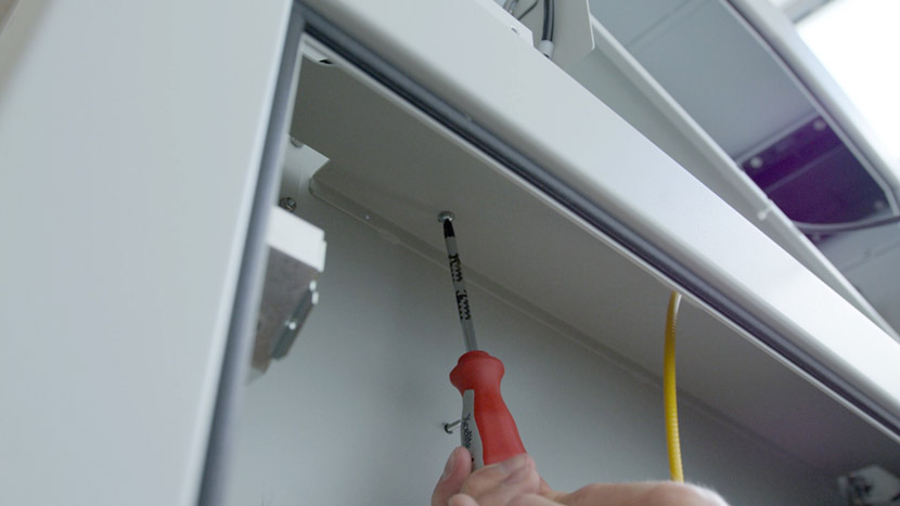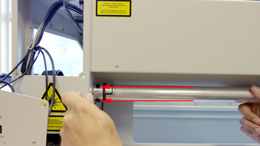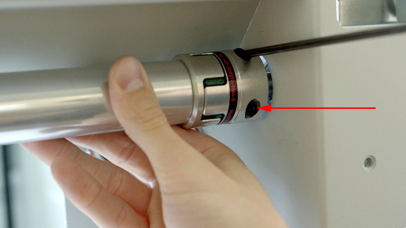 Lift the tube up into the housing at the top, then manually tighten the black mounting screw at the bottom.