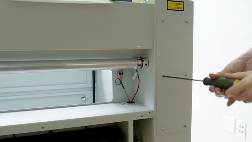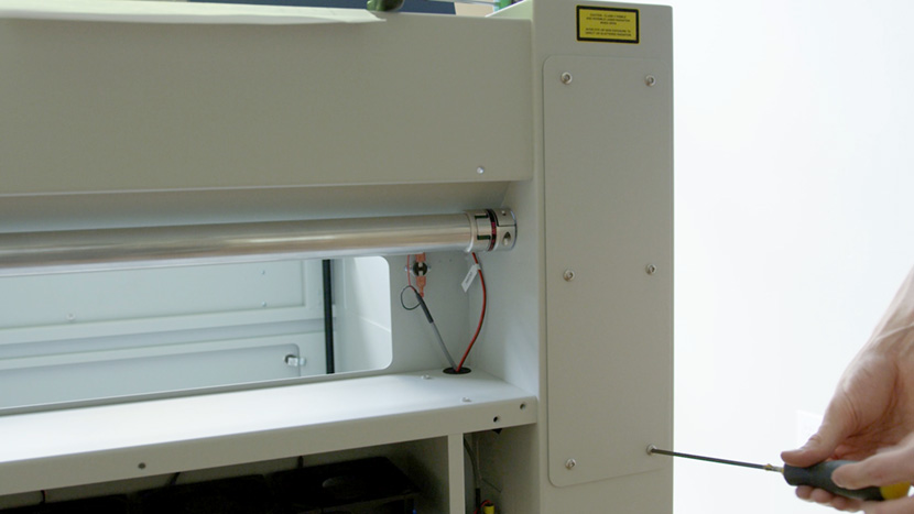 Now use a 5/32” hex key to reattach all of the panels on the machine.