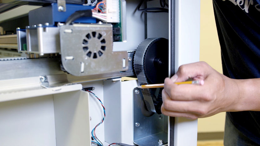 Tighten the y-motor tensioning screw until the pencil mark you made earlier is visible.