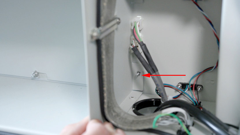 Use a nut driver to remove the 2 nuts securing the compartment panels on the interior side of the machine.