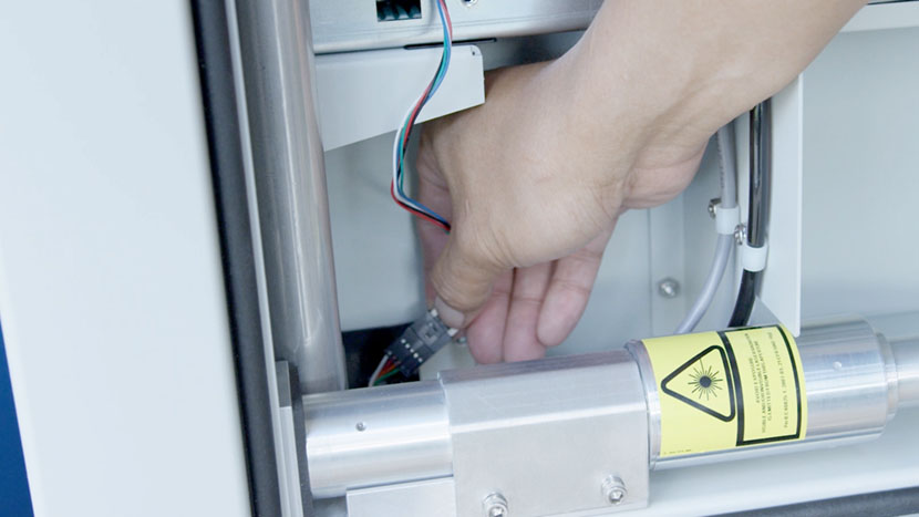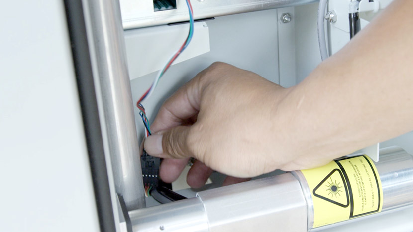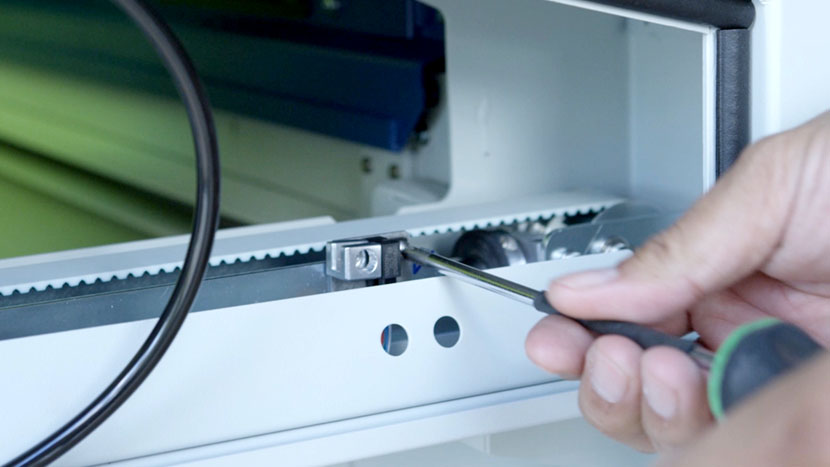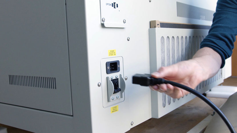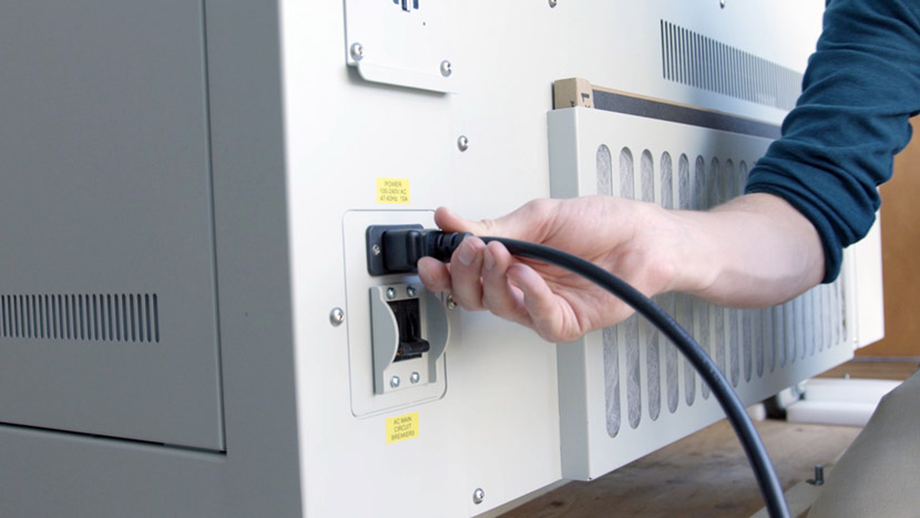 Shut off the laser and remove the power cord from the machine.