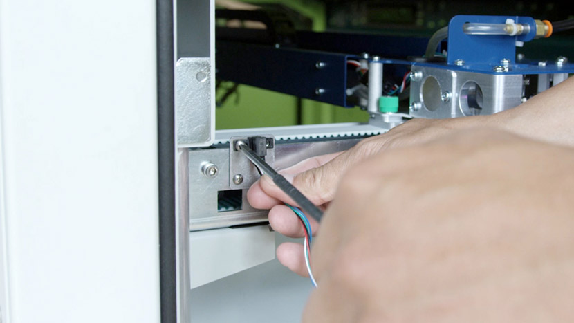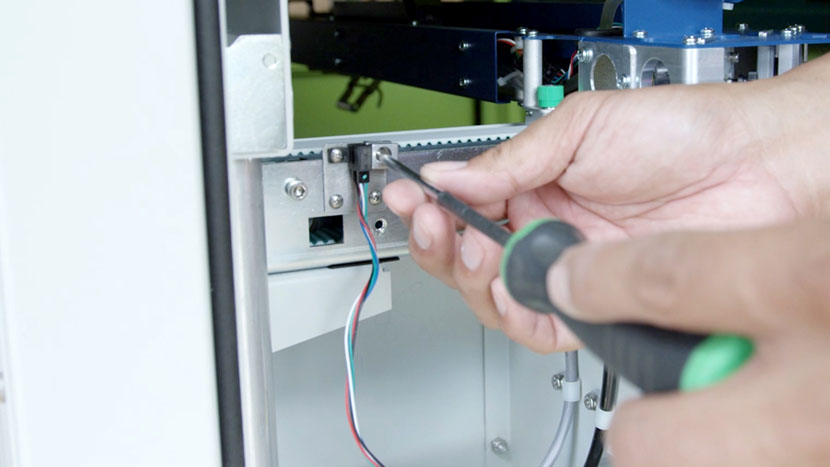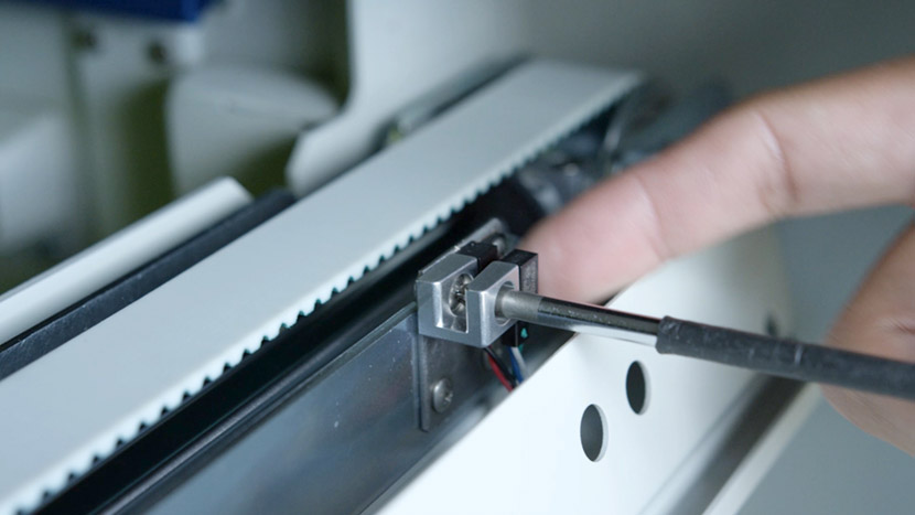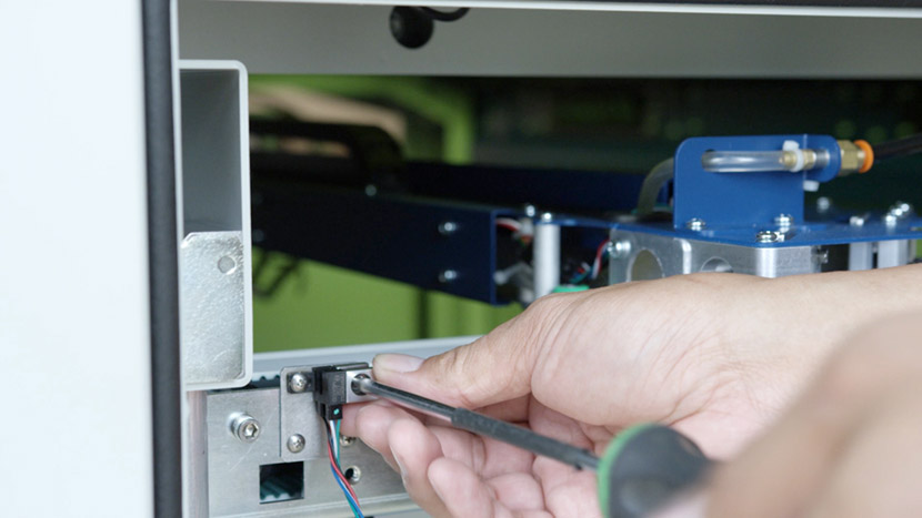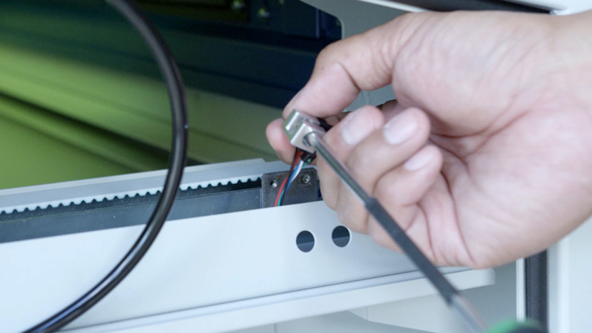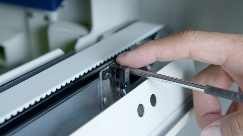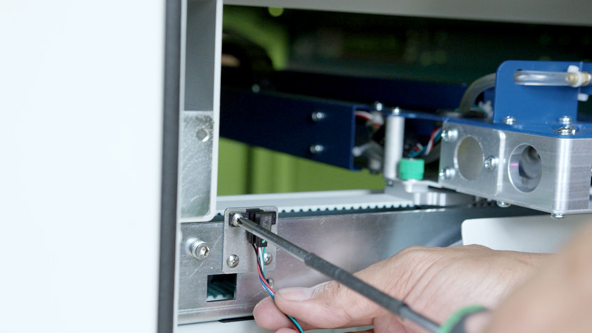 Use a Phillips head screwdriver to insert the two screws and secure the new sensor and the switch guard to the side of the y-axis.
