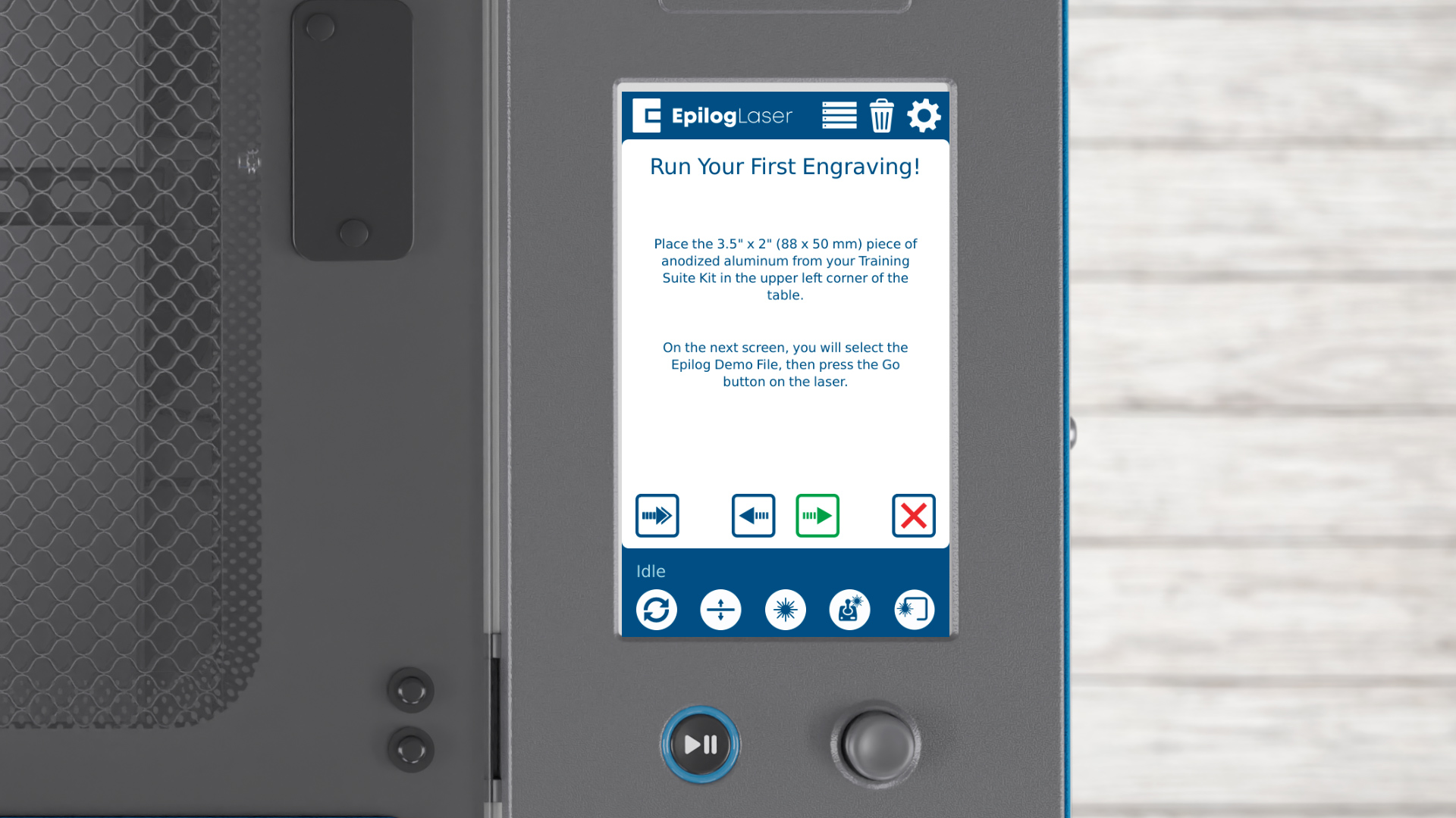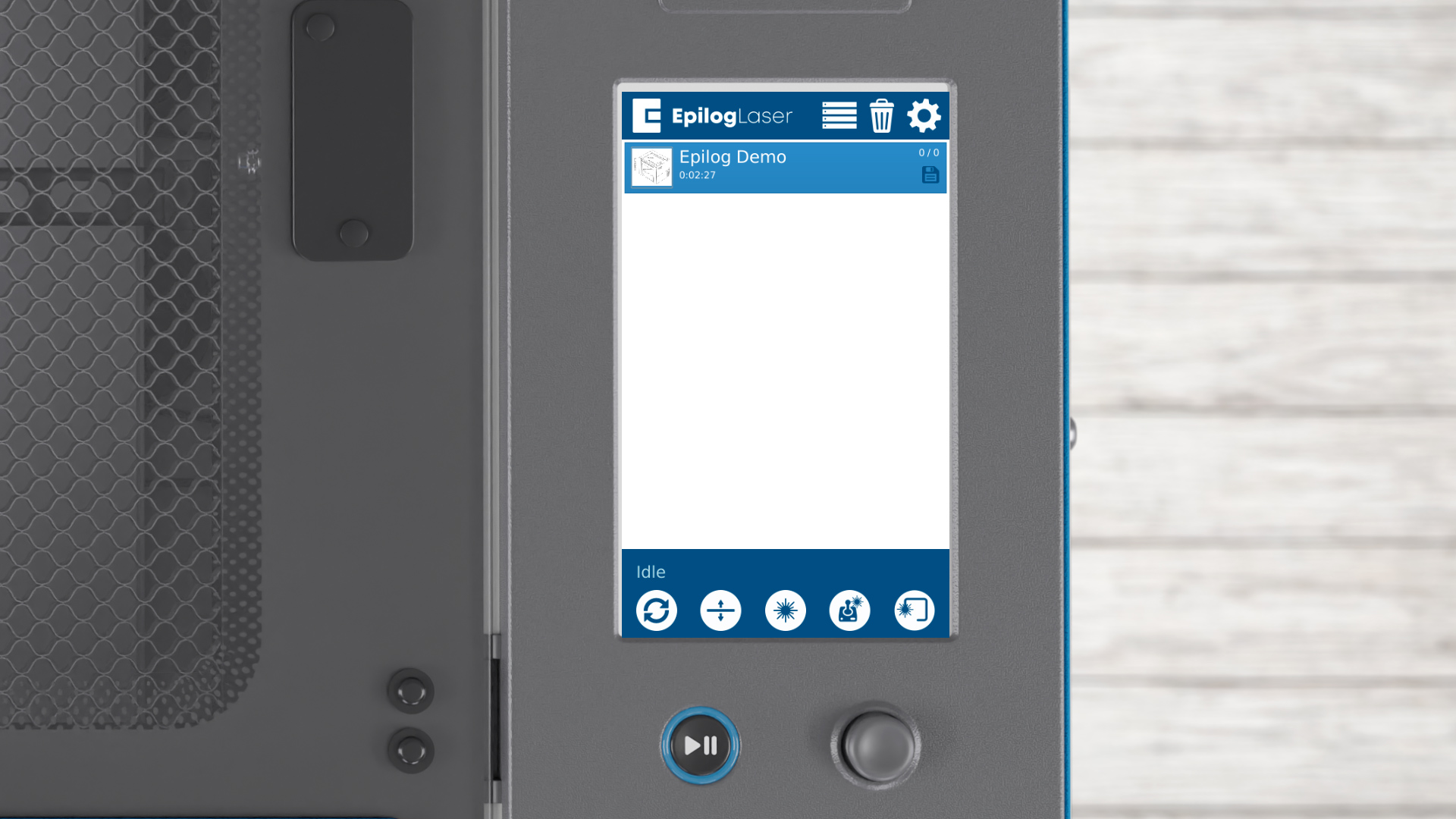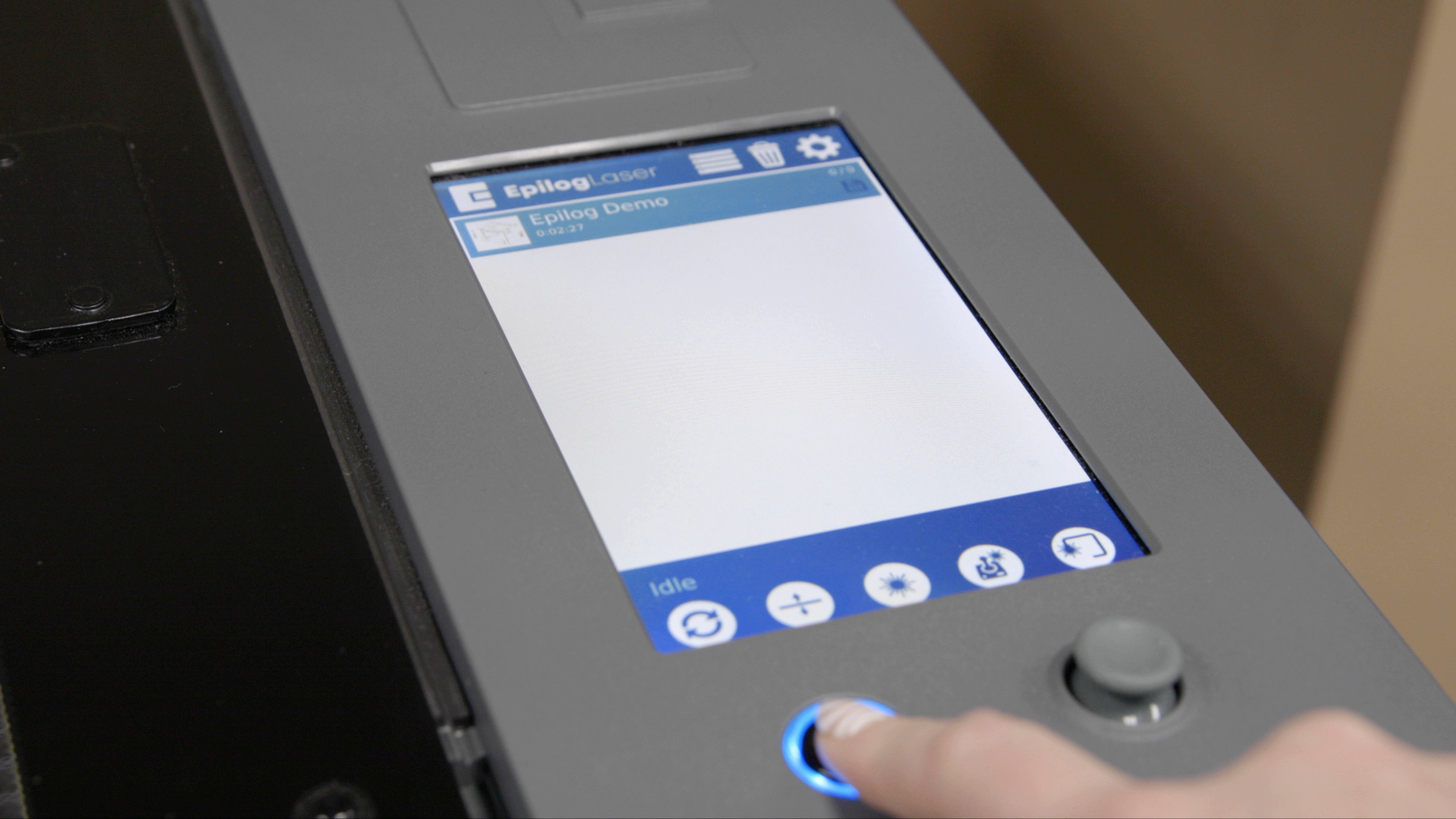 Now, let’s see the laser in action! Press the arrow to load the job in your laser system. You’ll see a file named ‘Epilog Demo’ in the file list.