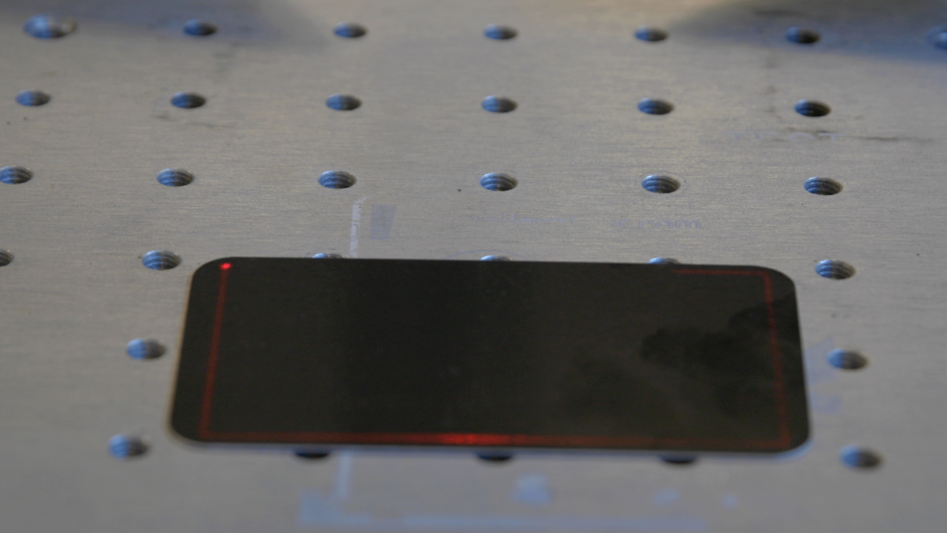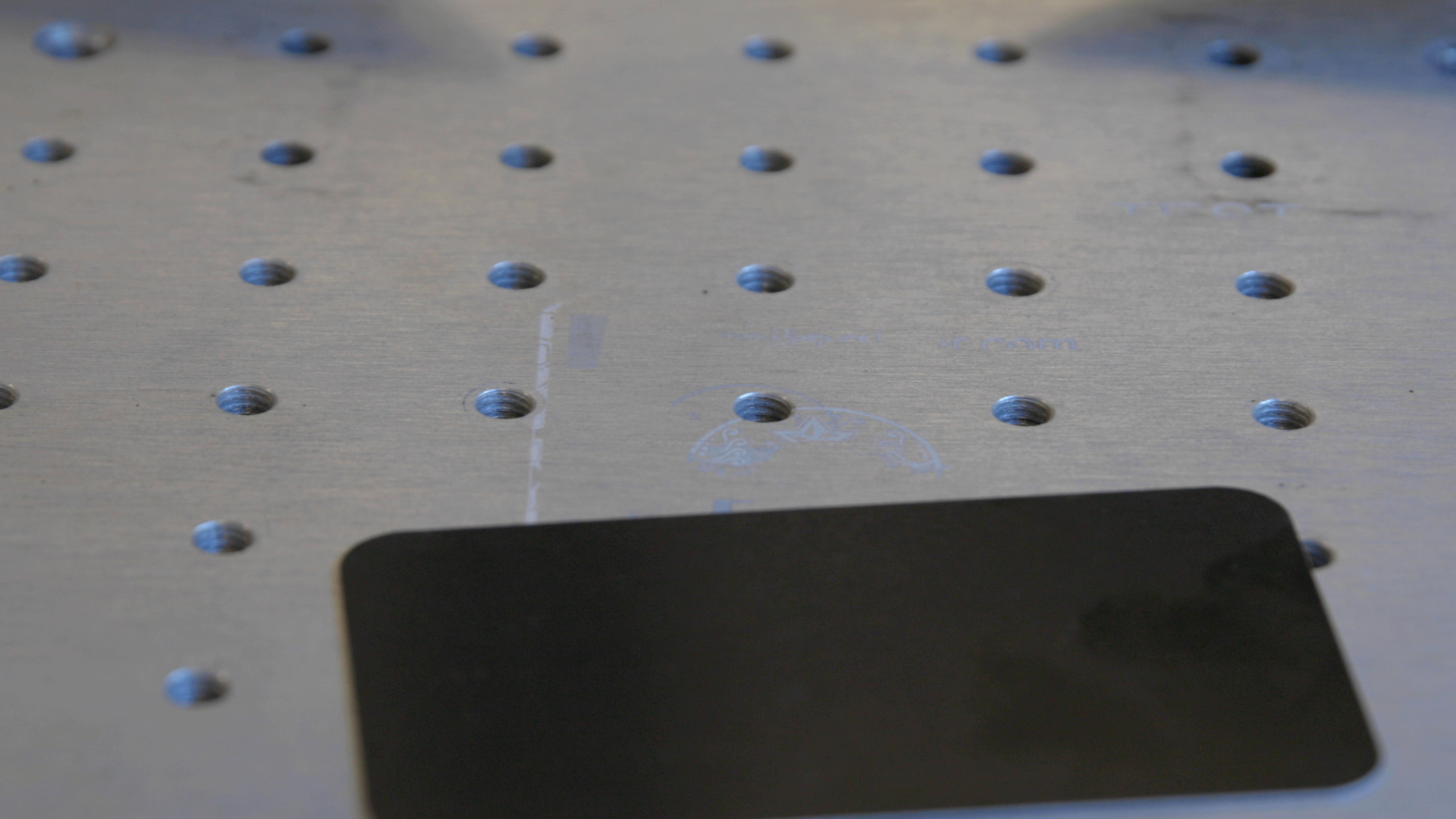 In your Training Suite Kit, you’ll find a 3.5” x 2” anodized aluminum piece. For Fusion Maker, Edge, and Pro models, place it in the top-left corner of the engraving table.