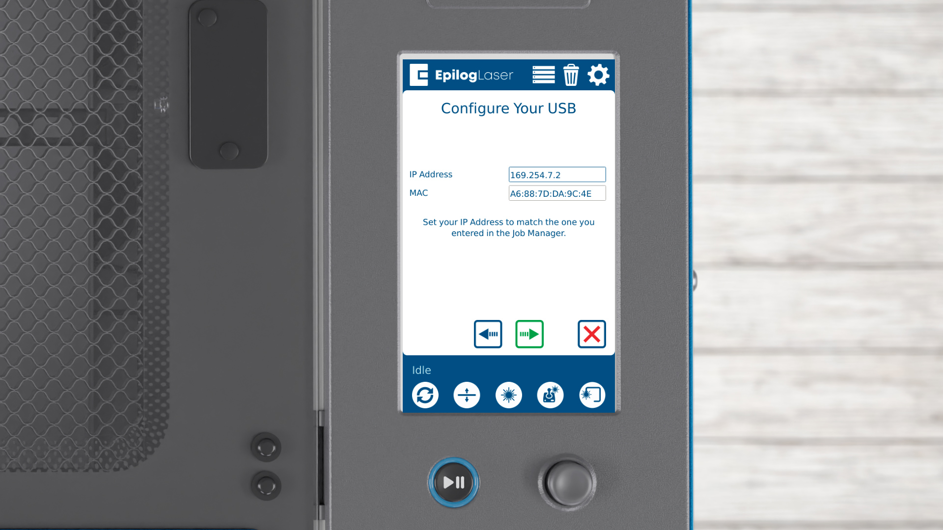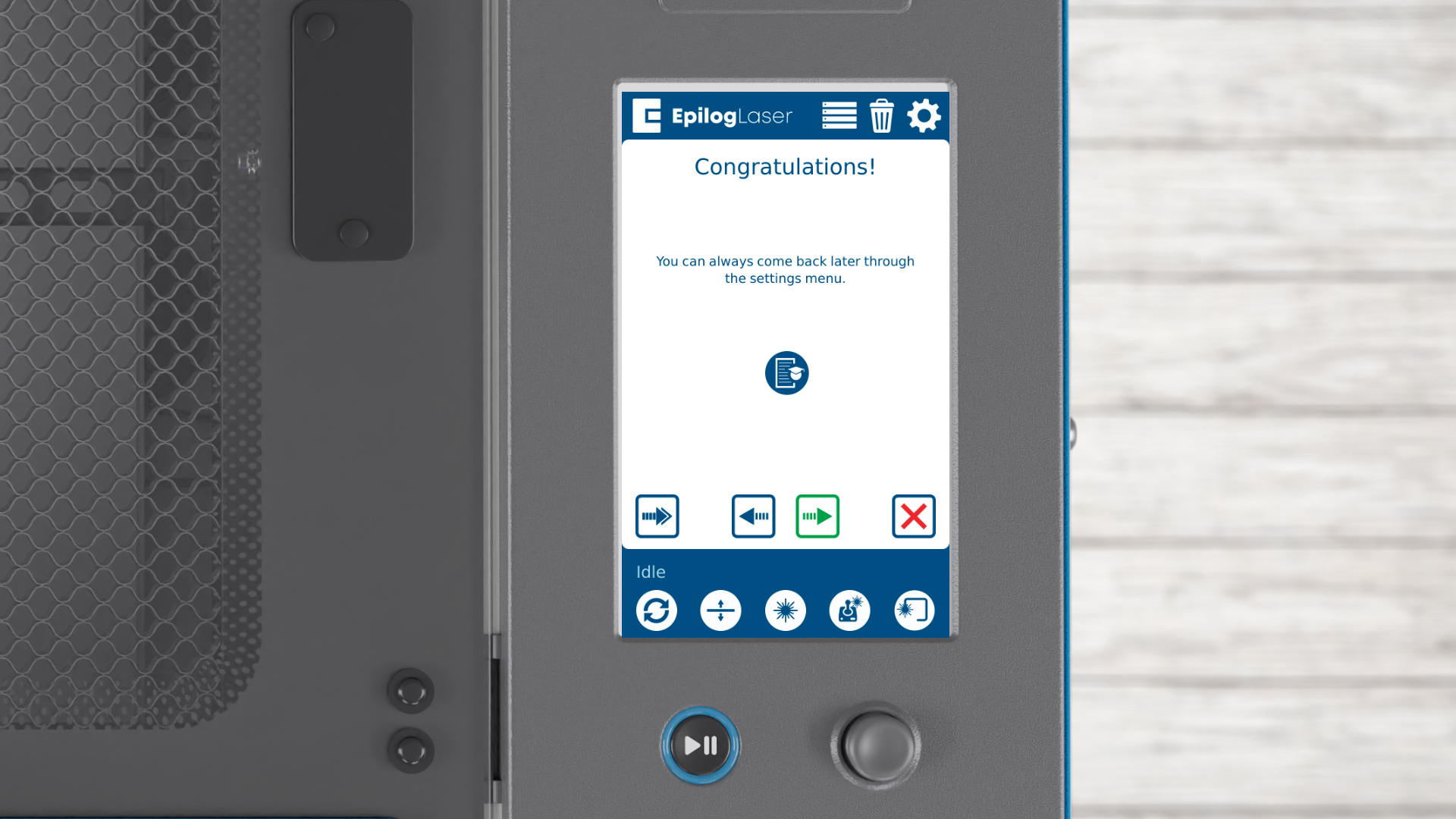 Everything we’ve set up today is also accessible in the settings menu at any time. Click the arrow to finish and start creating amazing projects with your Epilog Laser system!