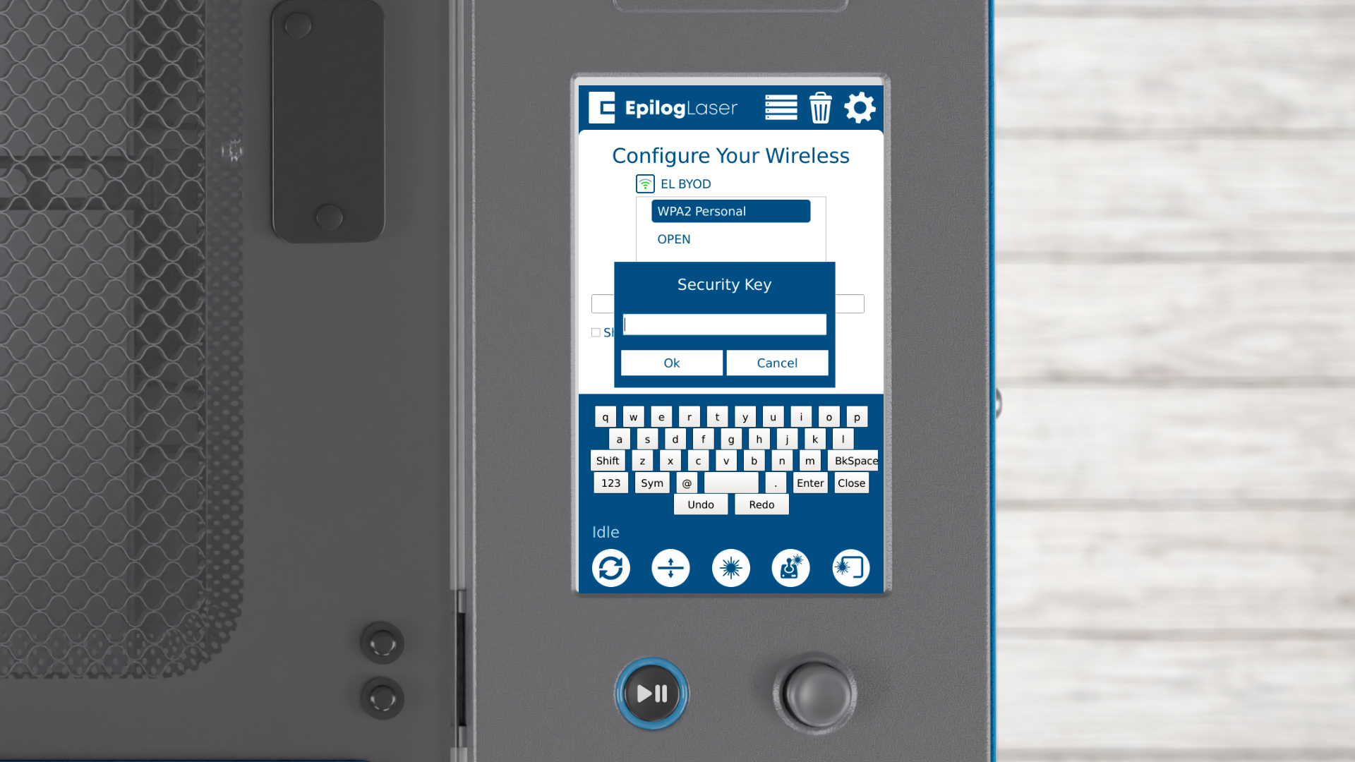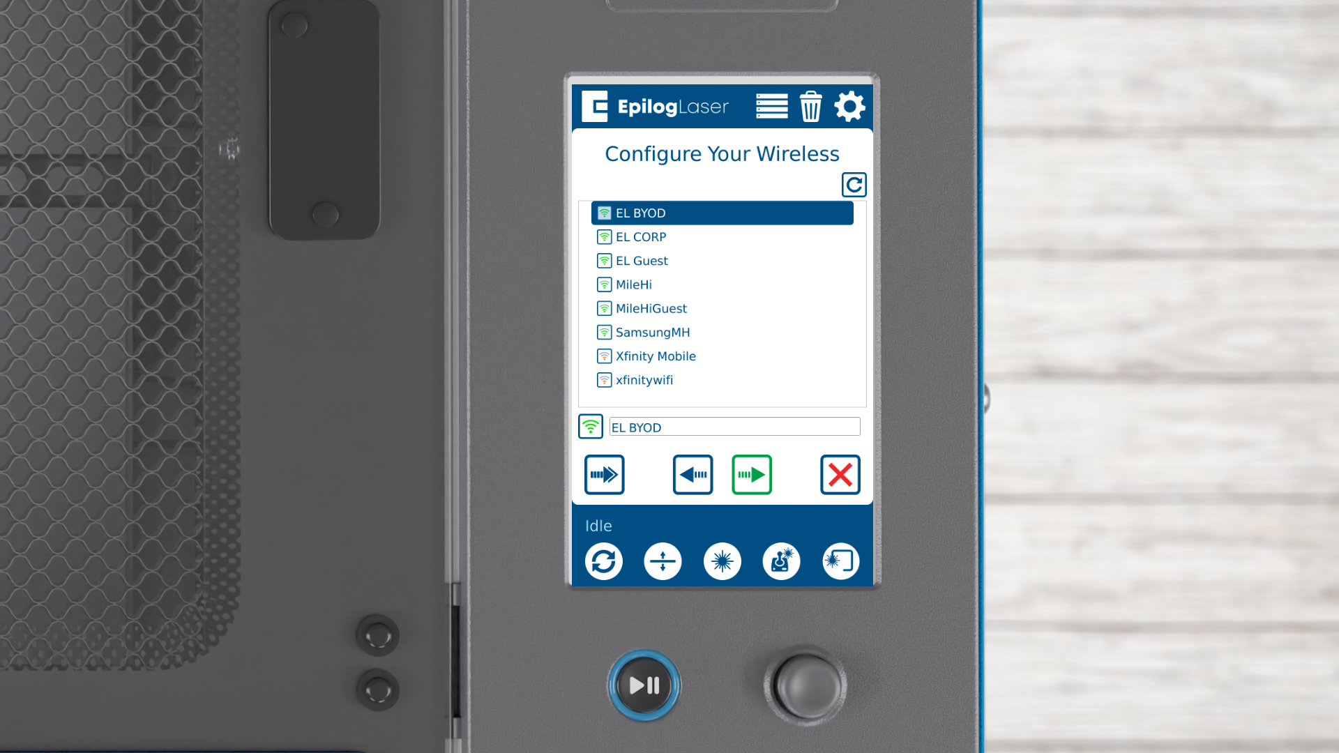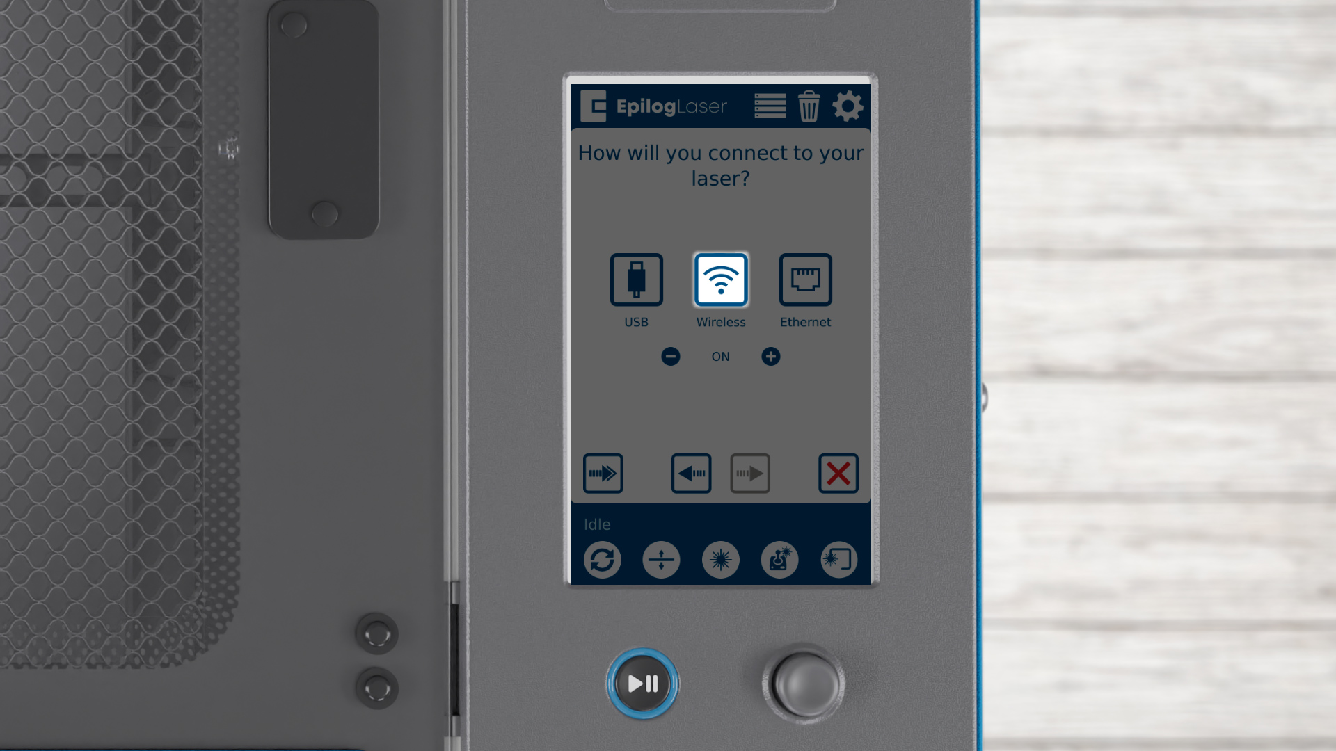 Next we’ll look at the wireless capabilities of the laser. Below the Wireless button, there’s a toggle for turning wireless capabilities on or off. If needed, you can completely disable wireless by pressing the minus button.