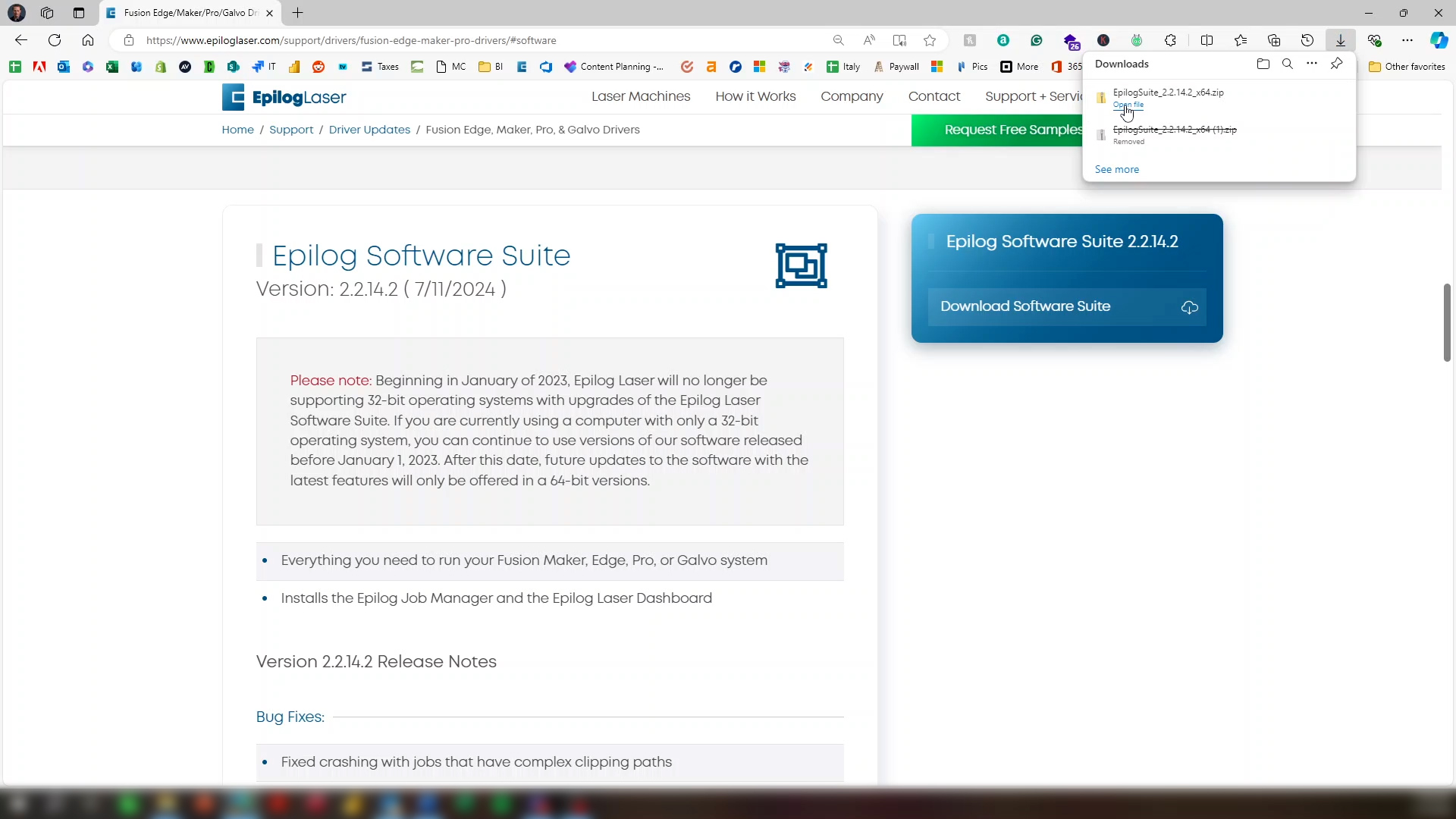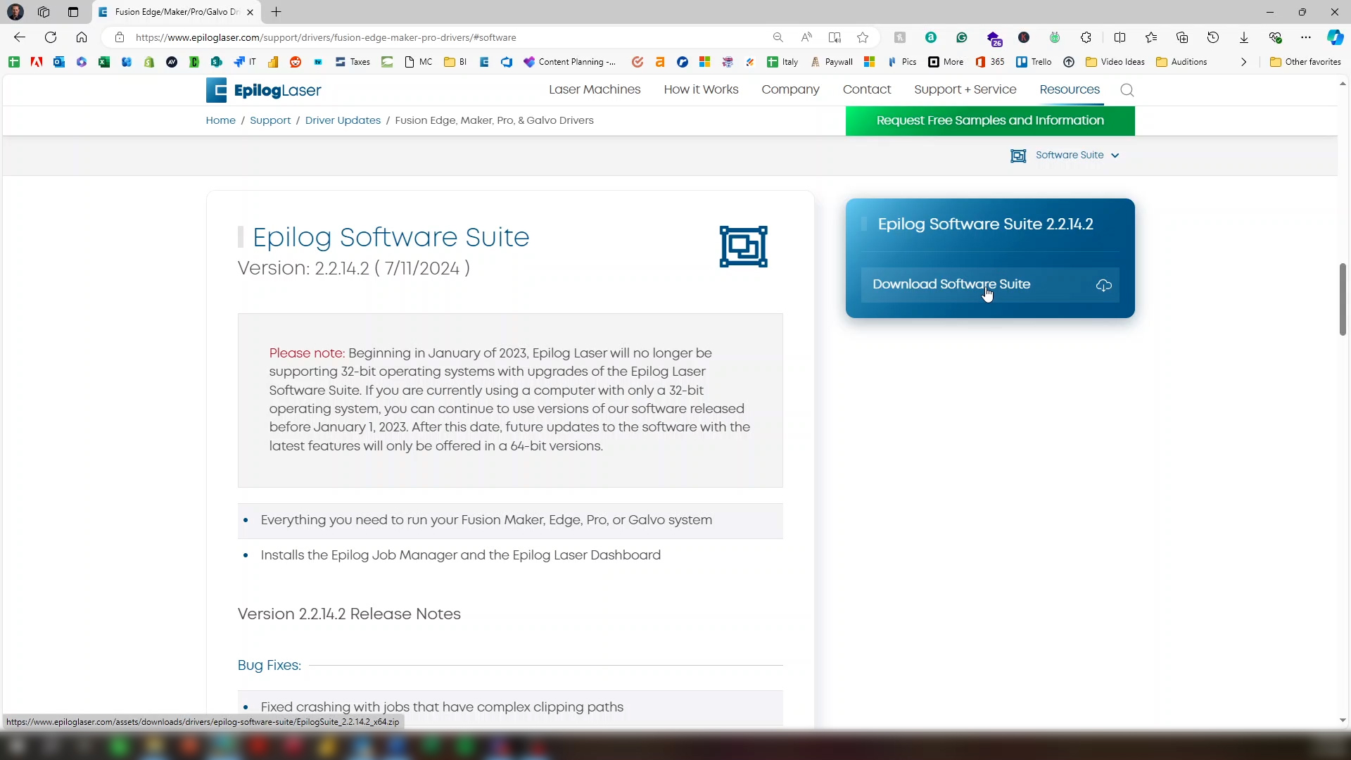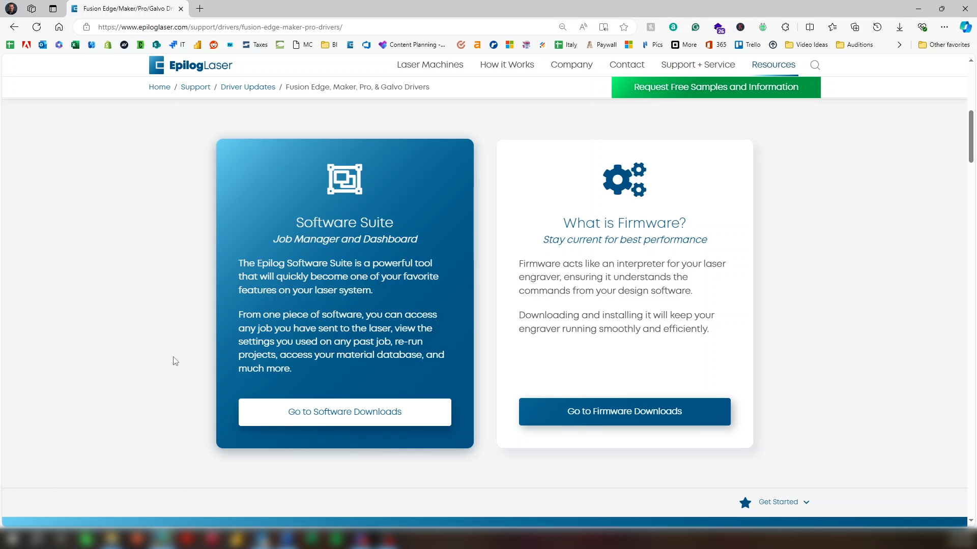 Visit Epilog’s website, go to Support, click Driver and Firmware Downloads, and select your laser system.