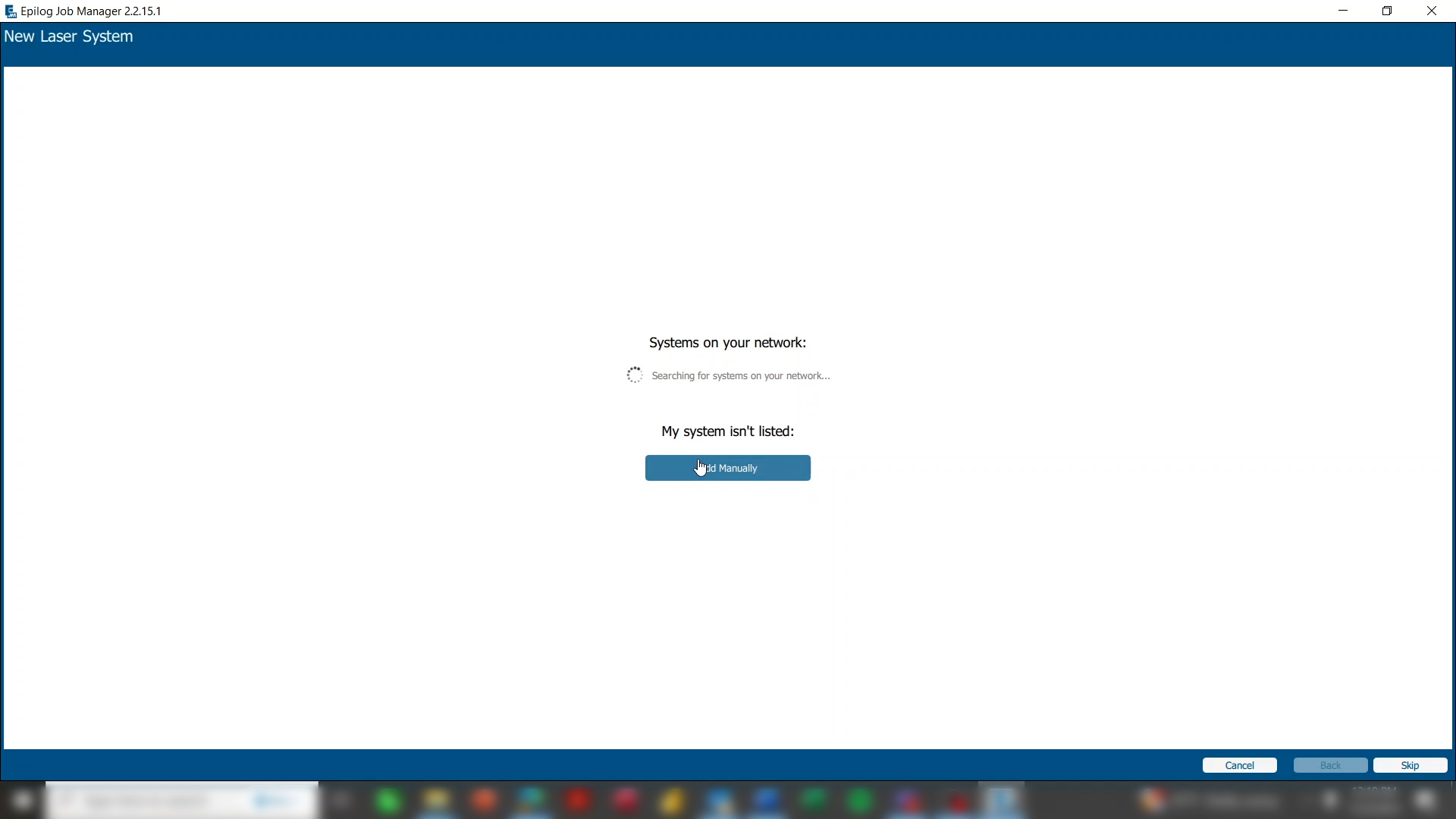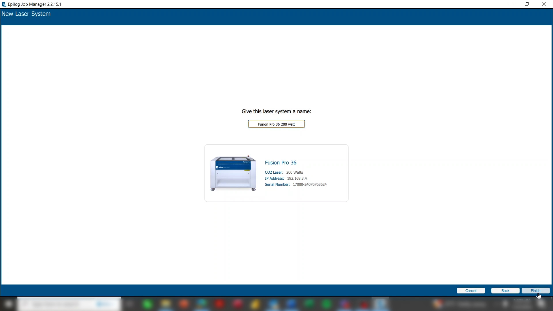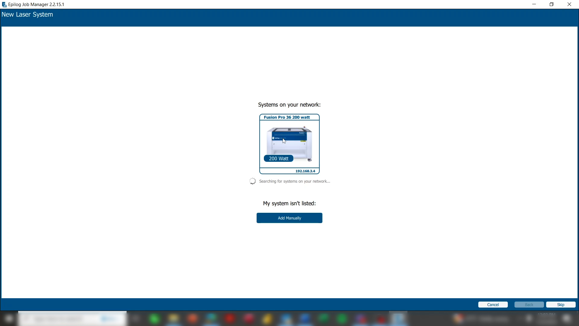 The system will search for any laser systems new to the network. Click on the image of the laser system.