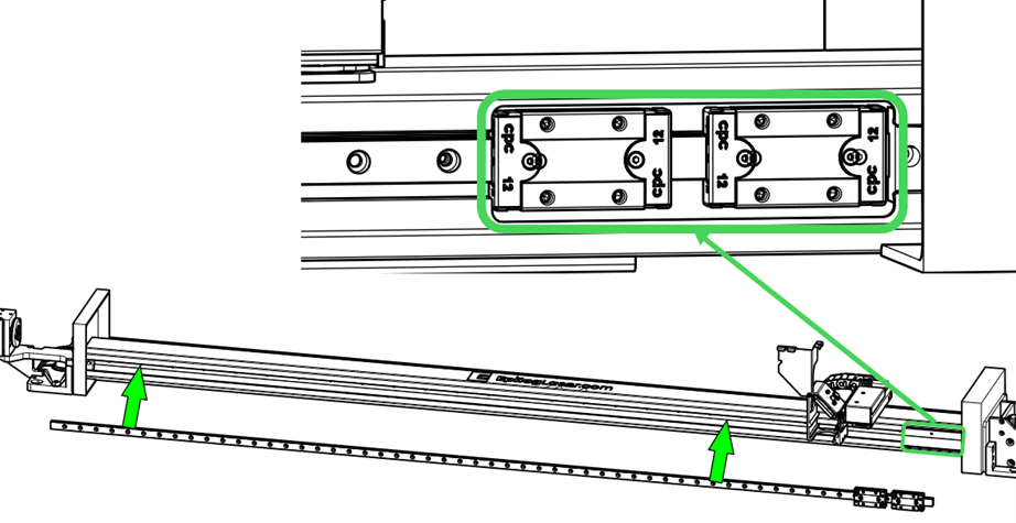 1. Install the linear guide with bearing blocks positioned at the cutout.