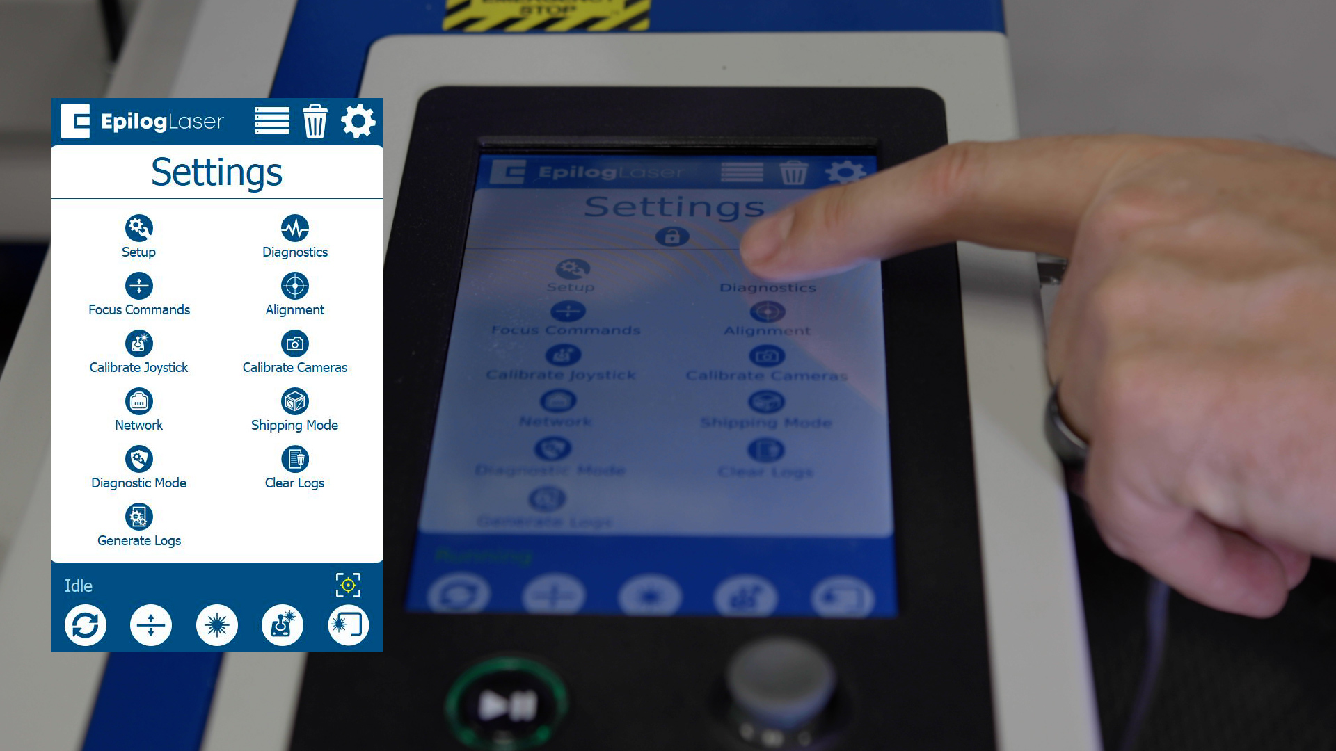 At the display panel, press the gear icon in the upper right-hand corner of the display to open the Settings menu.