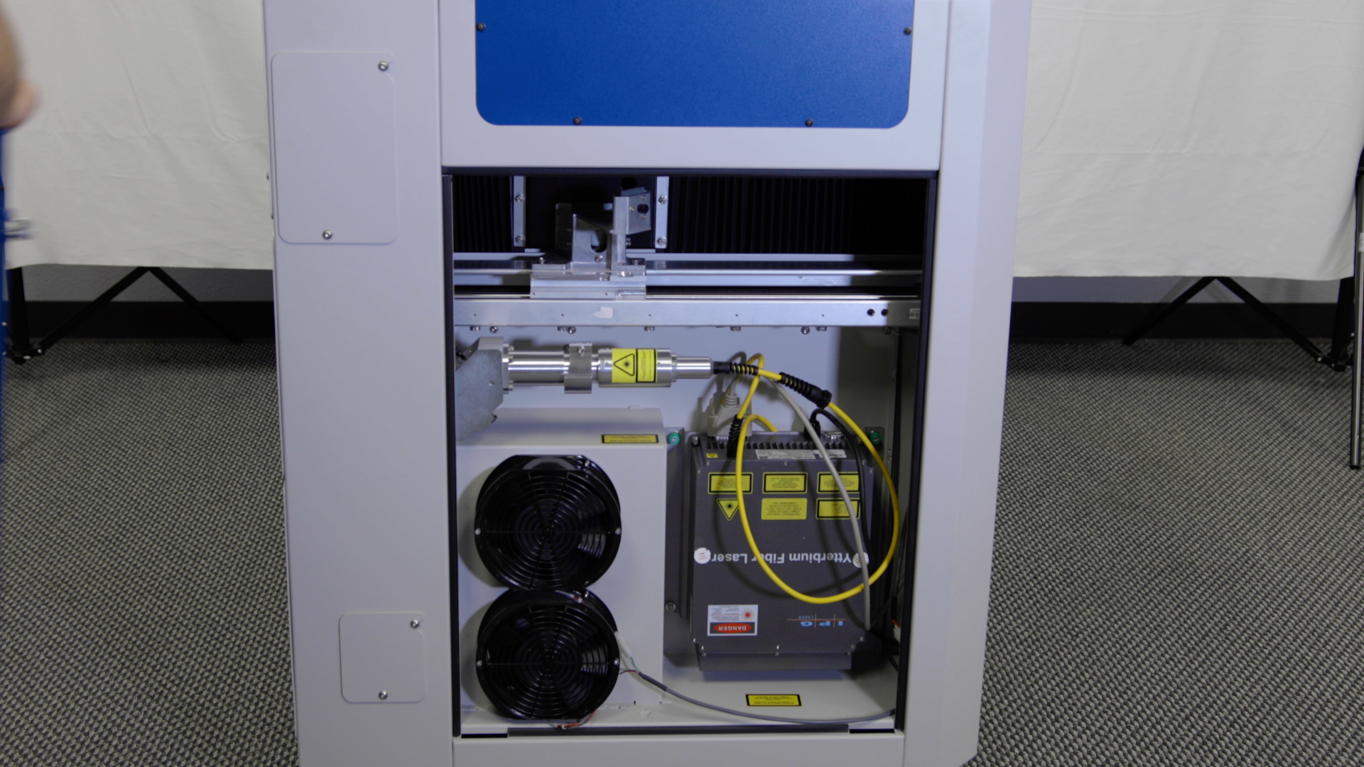 Using a 5/32” Allen Key, remove the right side panel from the machine.