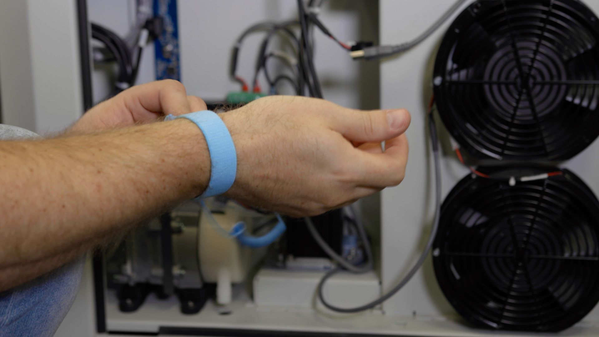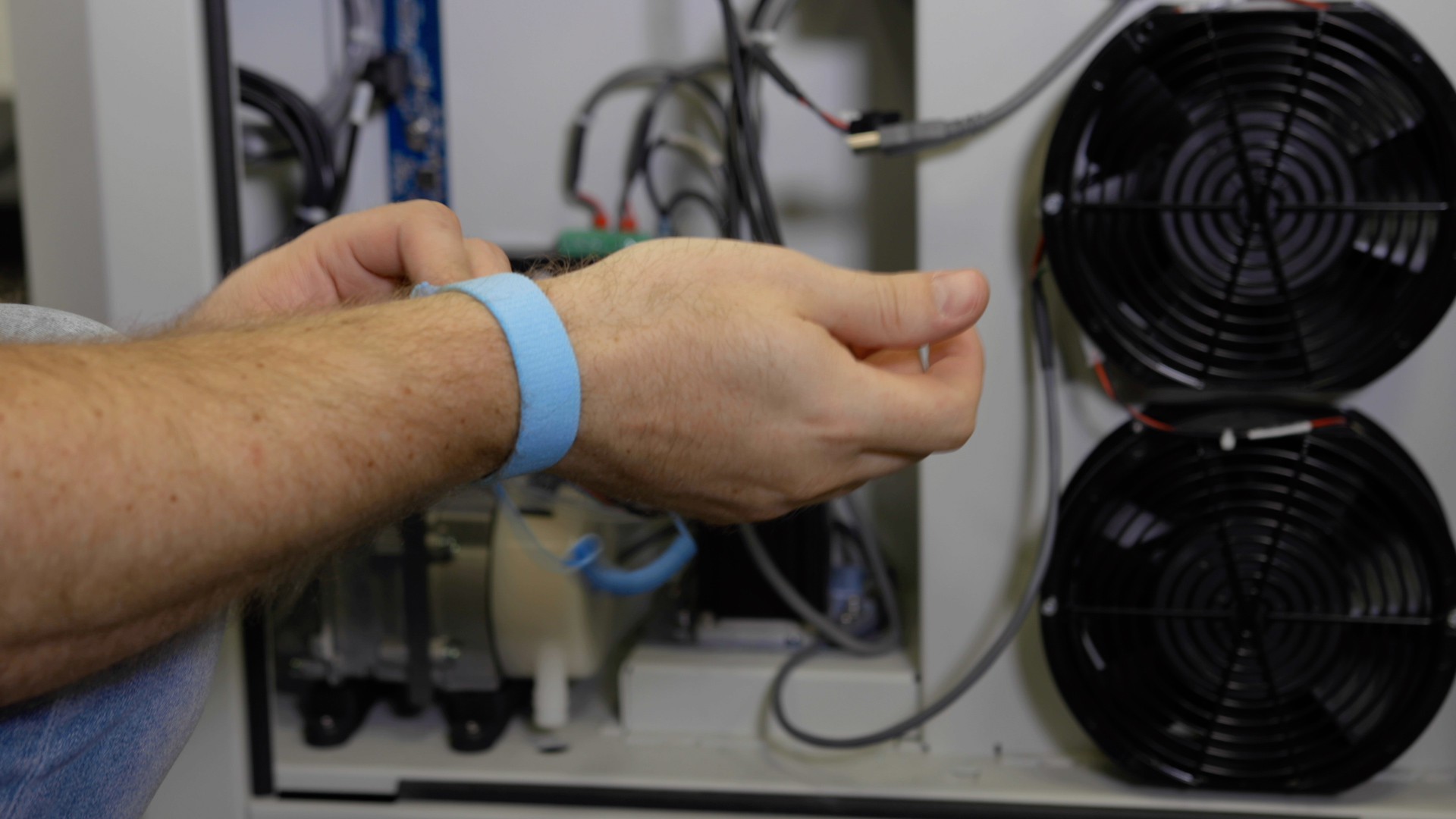 Take off the anti-static wrist strap until needed when replacing the motor drive board.
