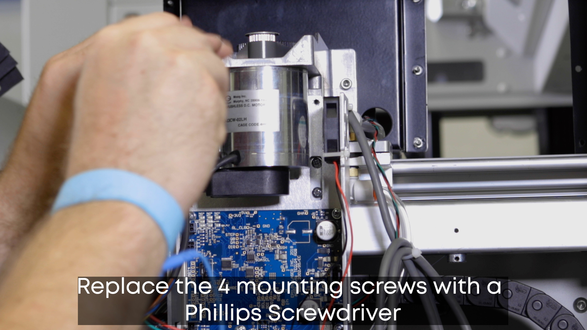 Replace the 4 mounting screws supporting the drive board with a Phillips Screwdriver.