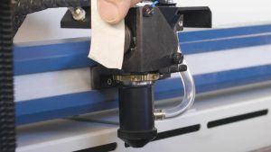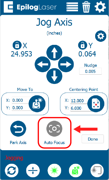 1. After completing the Focus Calibration Wizard, jog the carriage so it is positioned above the engraved anodized aluminum test pattern.