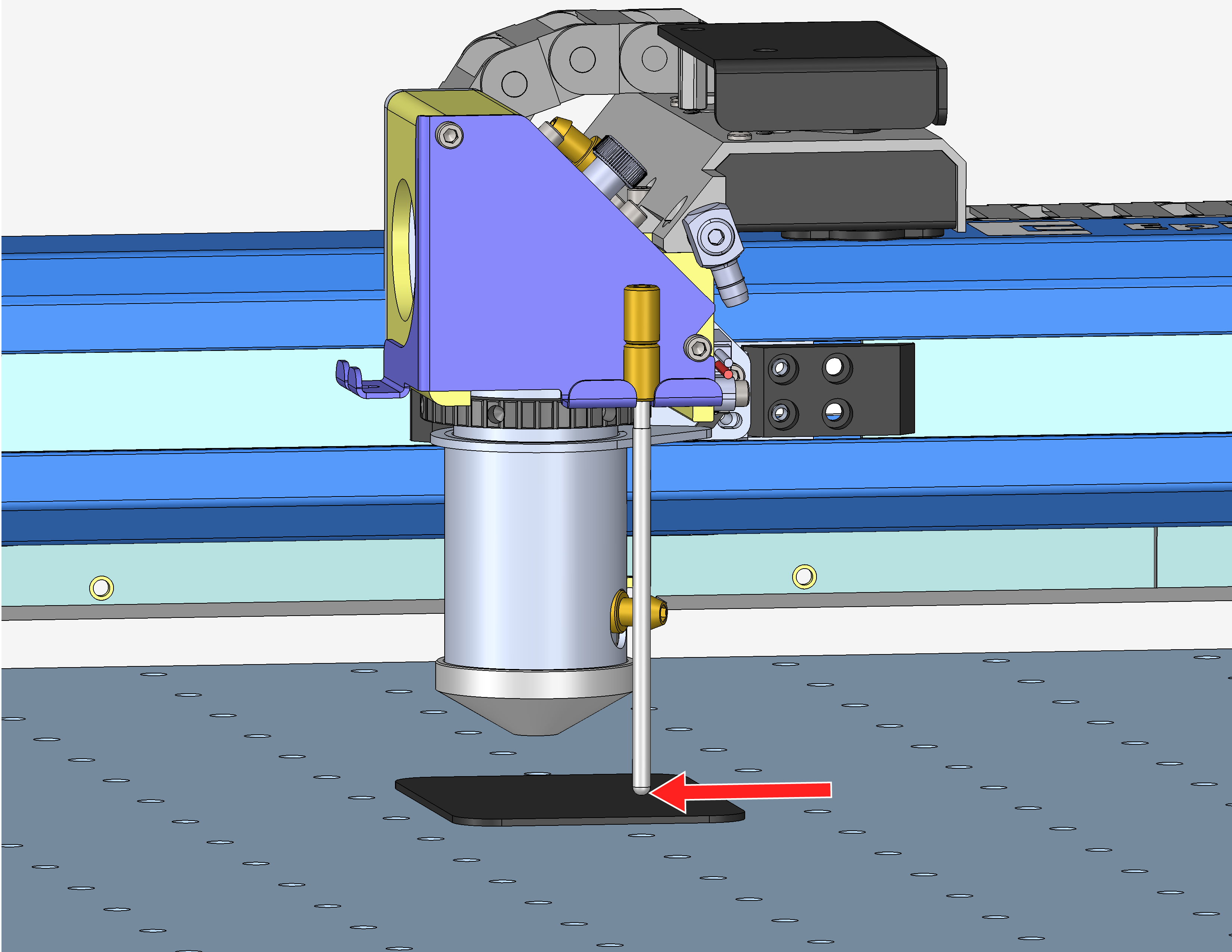 7. Verify that the tip of the focus tool makes light contact with the surface of the material.