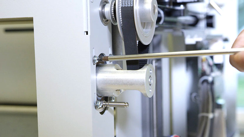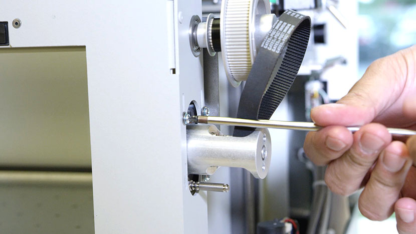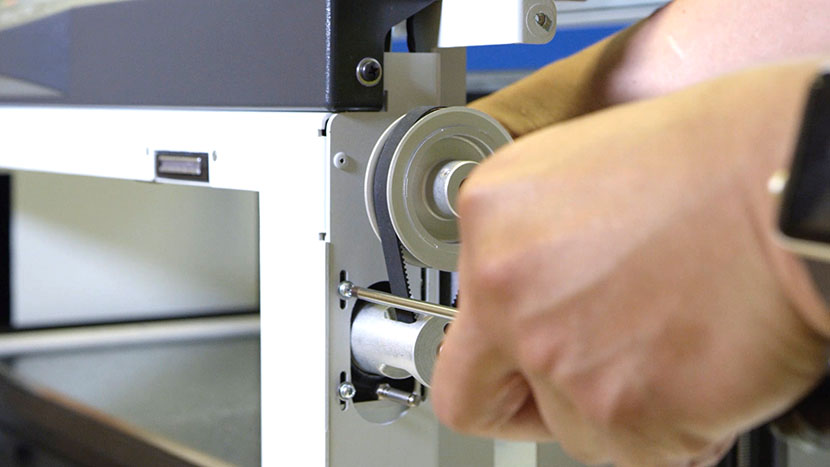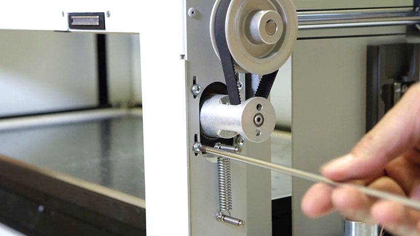 Loosening the Y-Motor mounting screws.Slipping the Y-Motor belt off the Y-Axis drive pulley.