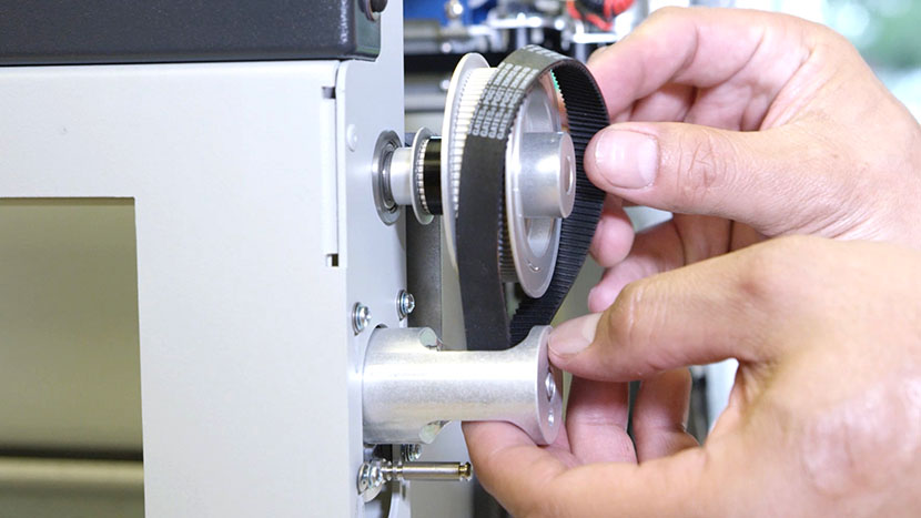 Loop the Y-Motor belt over the large Y-Axis drive pulley.
