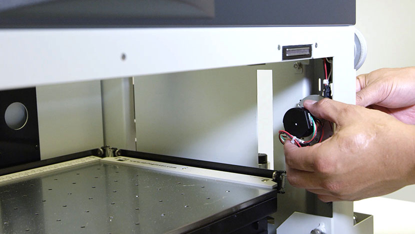 Looking at the Y-Motor from the interior of the machine.Looking at the Y-Motor from the exterior of the machine.