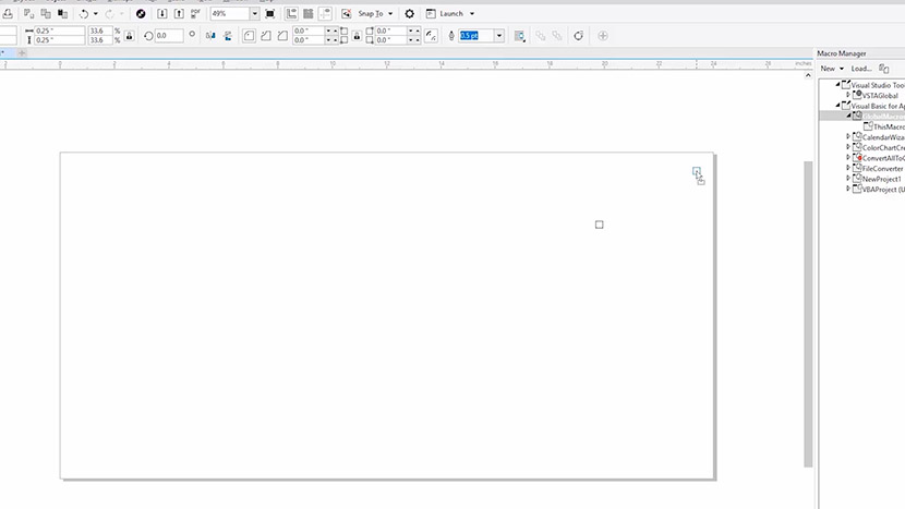 To begin the laser alignment procedure, in your graphics software, set your page size equal to your machine’s table size and create a small ¼” by ¼” black filled box in the upper right corner of the page, then send it to the laser.