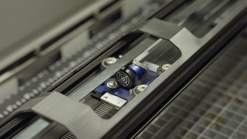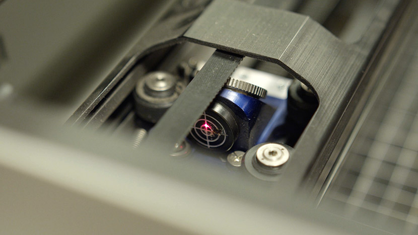 Move the lens carriage back to the front left corner of the machine and make sure the red dot is still within the center circle of the alignment target.